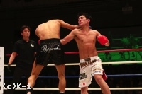 2R、バズーカは再びサウスポーから左ミドル。稲石はそこへ左右のフックを上下に打ち分けて迫る。バズーカは飛び込んでくる稲石にカウンターのストレート、フックを狙う。そして鋭い右ハイキックを放って当てると稲石はこれにフラつき、バズーカは左フックで追撃。しかし稲石は足がしっかりしてくるとミドルで反撃する。だがバズーカはバックブローも見舞って好印象でラウンドを終える。