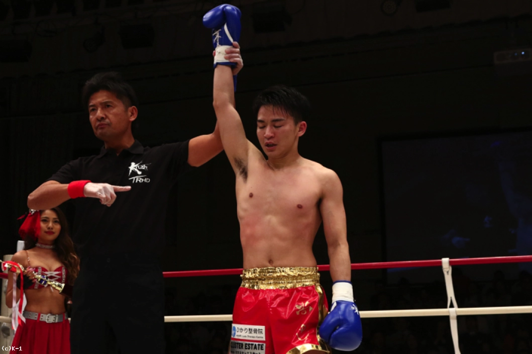 「(試合を振り返って?)1Rからあまりいきすぎないように意識して。要所要所でパンチが入って、作戦どおりにいけたと思います。(KO勝利については?)序盤からパンチが入っていたので、インターバルを終えて安心して2Rを迎えることができました。(今後の目標は?)少し時間はかかりましたけど、やっとKrushで一勝でいたので、この勢いに乗って突っ走りたいと思います」