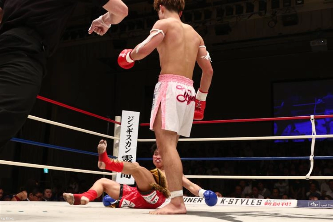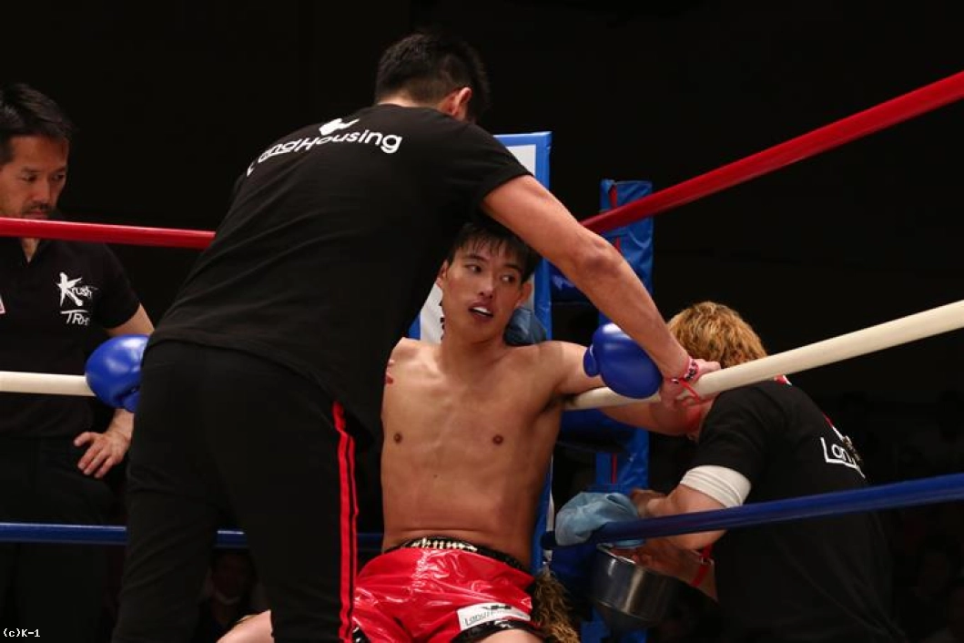 「(試合を振り返って?)今回、絶対にKOして勝たないといけなかったんですけど、予想外だったというか。最初、ボディが効いてはないんですけど、ちょっとイヤだったのと、あとは左足をちょっとケガしちゃって。いいわけになっちゃうんですけど、動けなかったです。(対戦相手の印象は?)パンチが強いっていうのと、アマチュアの大会でけっこうがんばっていた選手で。絶対に勝たないといけないってわかっていて、勝ちはしたんですけど、内容的には最悪で。川口選手は強かったです。(今後の目標は?)今日の試合でガッカリさせちゃった人がたくさんいたので、すぐに練習をして次にKrushで試合が組まれたらうれしいと思いました。ありがとうございました」