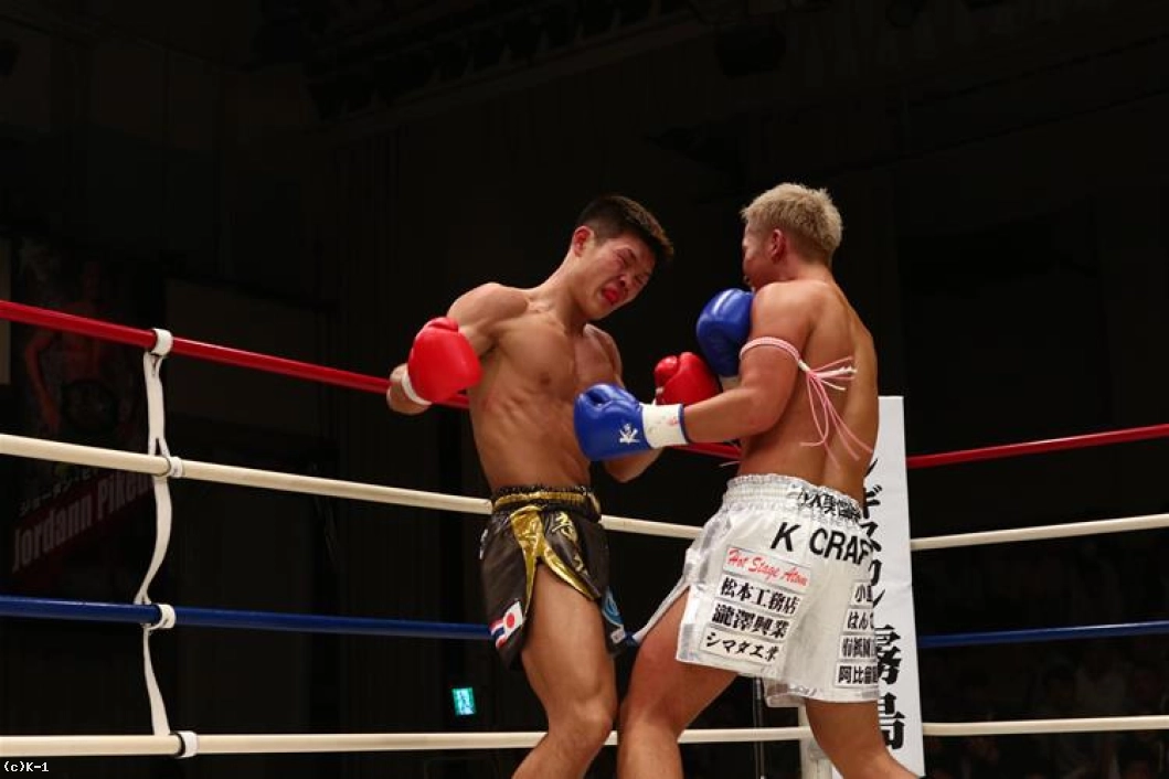 「(試合を振り返って?)相手が格上の選手だったので、勝ち負けよりも自分を出して楽もうと思って。メッチャ楽しかったです。KOできなくて悔しかったですけど、会場もアガってたんで。(対戦相手の印象は?)けっこうフィジカルが強くて身体がゴツくて。蹴りが強かったですね。トップ選手だと思って、食ってやろうと思ってました。(今後の目標は?)試合内容は納得できていないので、もっと倒せる試合をして、もっと会場を盛り上げたいです。もっともっと強い選手、チャンピオンクラスくらいの選手とやれればと思っているので。かかってこいという感じです」