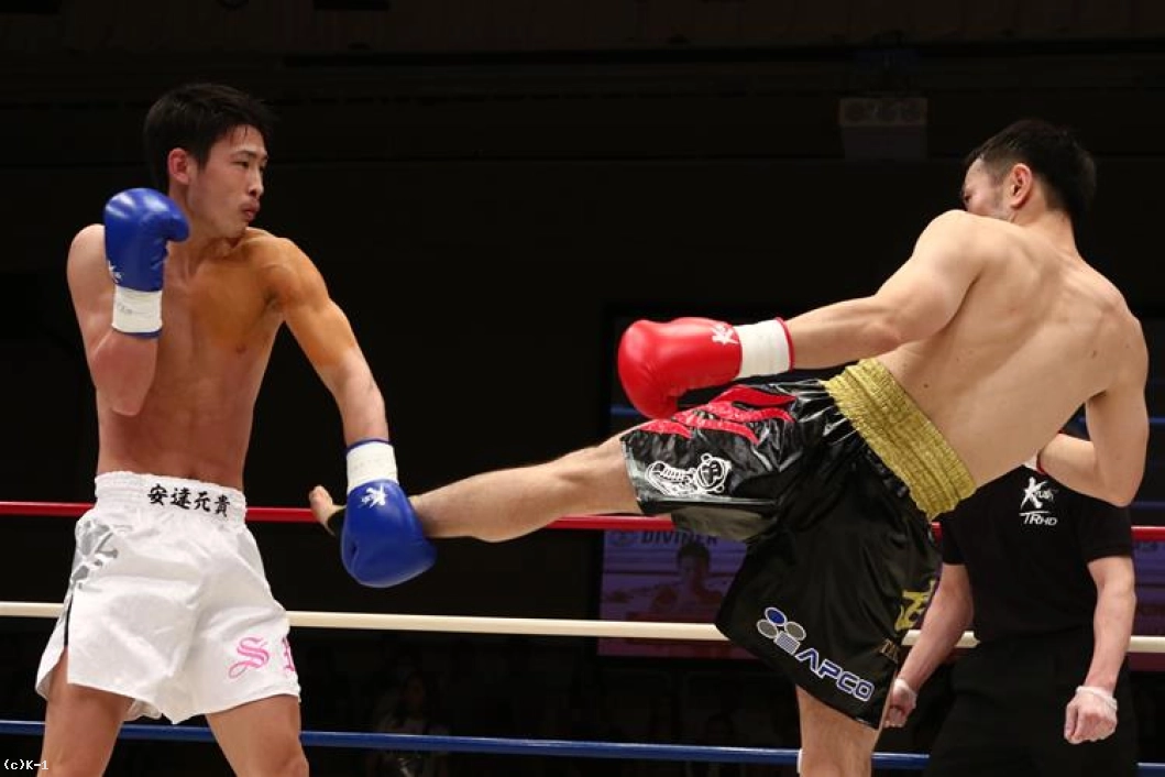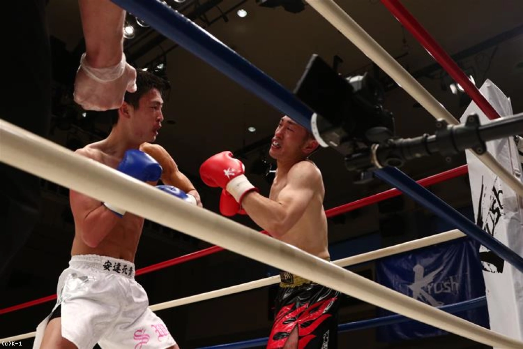 3R、安達はやはりプレッシャーを掛け渡辺を追い詰める。左フックの上下打ち、右フック、ハイキックと前に出る安達。渡辺も右クロス・左フックを返して応戦するのだが、安達が攻撃力で上回る印象で、安達が攻勢。安達がコーナーに追い詰め、渡辺に左右のパンチとハイキックを浴びせる。渡辺も依然ストレートとフックを返しているが、どうしても安達の勢いが上回る。判定は3者とも29-28の3-0で安達。これで連勝を3に伸ばした。