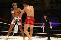 1R、両者オーソドックスからジャブを伸ばして相手の出方を探る。佐々木は右ストレート、細かなローを送っていくが、ジーウェイはこれにバックブローを返し、プレッシャーをかける。佐々木はフットワークで距離をあける。