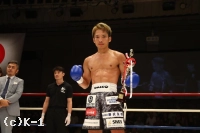「(試合を振り返って?)僕の応援団は盛り上がったと思いますが、そうじゃないお客さんはちょっと静かな感じが伝わってきて。そういうものもインターバルのときにセコンドに確認をして、けっこう冷静でしたね。新しいことを積んでこの試合に挑んで、勝っても負けても正直プラスの過程を作れていたので、今後が楽しみです。(対戦相手の印象は?)凄く気持ちのある選手で、僕自身は楽しかったと思います。気持ちが伝わる選手と試合できたのが、プラスになったと思います。(今後の目標は?)今後はスーパー・ライト級のベルトを目指して。あとは面白い試合ですね。観ている人が望む試合。世界がどよめく、そういう試合をしていきたいなと思います」