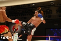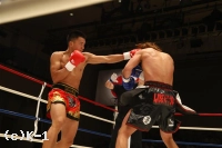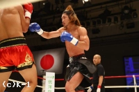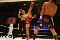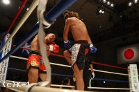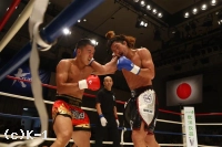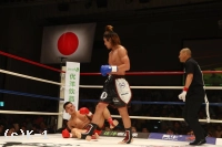 2R、左ジャブから出て行かんとする左右田だが、グォドンも右ジャブから左ミドルを返して左右田をストップする。左右田はここから左ボディフックを出し始め、続いて右ボディフック、右ストレート、ヒザとグォドンを徐々に下がらせていく。グォドンも左右のスイングフックを放ち、これで左右田の顔面をとらえる。しかし左右田は前進を止めず、グォドンが左右フックを振るって来たところでカウンターの左ボディフック。これでグォドンを悶絶ダウンに追い込んでKO。日本チームに4勝目をもたらし、日本チームの対抗戦の勝ち越しを決めた。