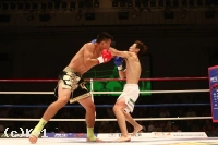 1R、軽快な前後のステップを見せるチョンヤンだが、レフェリーがブレークした後にパンチを見舞ってしまい口頭注意を受ける。的確な左ジャブでチョンヤンの動きをストップするレオナだが、チョンヤンが頭から突っ込んできてバッティングとなってしまう。レオナにインターバルが与えられた後で試合が再開し、ラウンド終了間際は両者左右のフックとストレートを振るい激しい打ち合いを展開する。