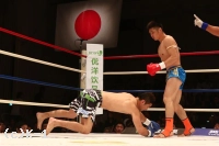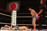 1R、サウスポーに構えローを飛ばしていく高木に対し、ガオフォンはこれを見切って当てさせず、右ボディフック→左フック→右フックで高木を前のめりになぎ倒してダウンを奪う。立ち上がった高木に対し、ガオフォンはミドルキックから巻き込むような左フックで倒して2度目のダウンを奪う。そして最後も高木をコーナーに詰めて左フックを打ち込み、初回KOで高木を下した。