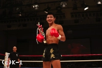 「里見選手は同い年ということで、より一層負けられない気持ちでした。里見選手からは最後の1秒まで一撃にかけてくる気持ちが伝わってきて、自分自身、成長できた試合内容だったと思います。(対戦相手の印象は?)とても素晴らしい選手で、戦っていて気持ちいい選手でした。ずっと僕はKrushのベルトを獲ることを目標にしていて、K-1という素晴らしい舞台もあるんですけど、Krushのベルトを獲ってKrushの朝久泰央は強いぞというところをみんなに知ってほしいです」