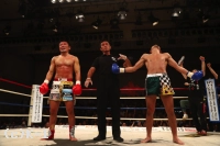 判定は30-29(中澤)、30-29(篠原)、30-29(篠原)の2-1で篠原。パンチのヒットとローのダメージで評価を分けたが、リベンジを果たしベルトを腰にした。