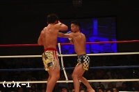2R、中澤は右ローを当てて前進。篠原はジャブと前蹴りでこれをストップせんとする。中澤はローで足払いのように篠原のバランスを崩し、さらに右ローを追加する。篠原はサウスポーに変わり左ストレートを決める。さらに跳びヒザも放つが、中澤は圧力を弱めることなくローを浴びせていく。右ストレート、前蹴りで下がらせんとする篠原だがタフな中澤は被弾しても下がらない。
