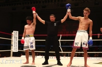 3R、前に出てローからパンチを打っていく関川。塚本もパンチを返すが、関川の前進にコーナーに詰められる場面も。だが塚本も下がりながらパンチ、ヒザ蹴りを入れていく。中盤には互いに連打を入れる場面も。2分過ぎには塚本が右ハイ。関川はなおも出続け、右フック、アッパーを打ち込んだところで試合は終了。判定は三者とも29-29でドローとなった。