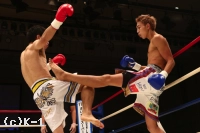 2R、前進して上下のパンチを出す塚本に関川はローを連打。塚本は後退を余儀なくされるもフック、ヒザ蹴りを返す。中盤、塚本の右ストレートが連続でヒット、さらにヒザ蹴りを連打する。関川は距離を詰めてロー、ミドルにパンチを混ぜていく。終了間際、塚本のフックからアッパーがヒットして関川が前のめりになったところに塚本のハイがヒットする。