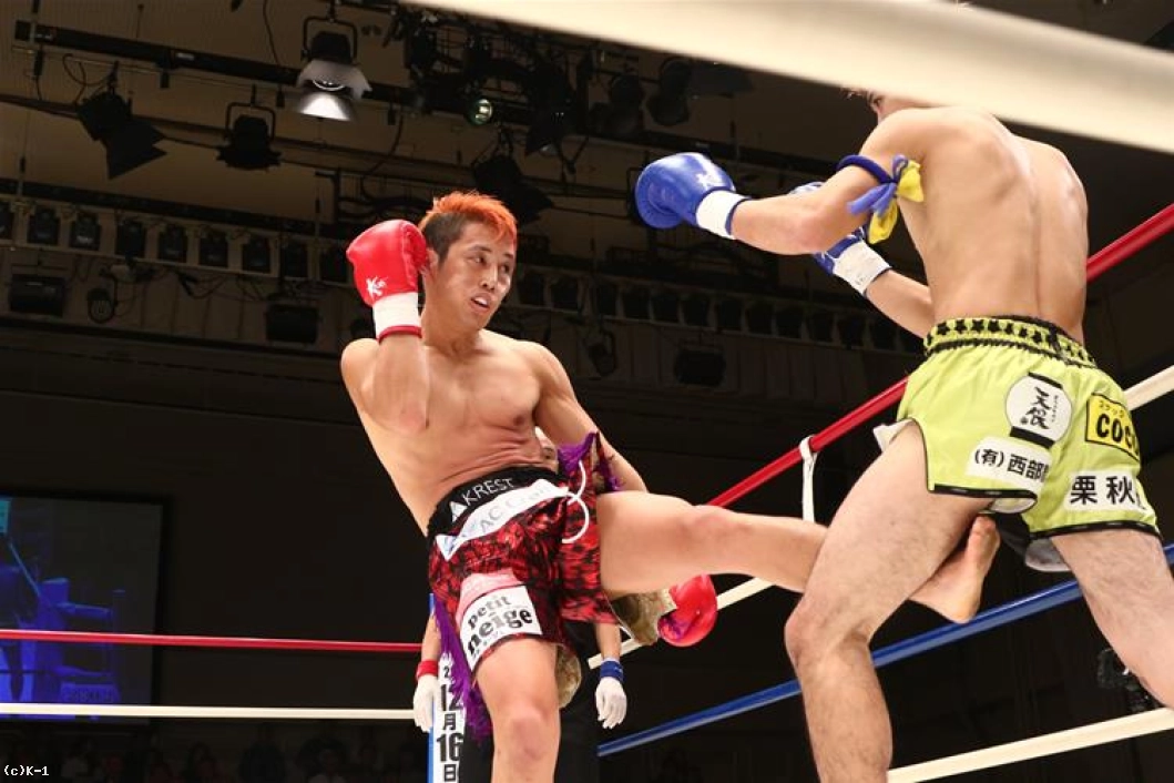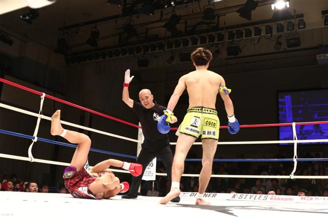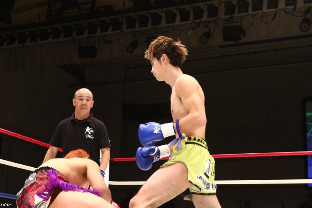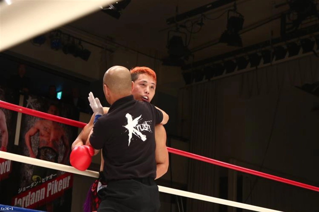 「(試合を振り返って?)無事にKOできたんですけど、作戦として狙ってた技じゃないので。まだまだ復習点があるので、もっともっと力をつけてがんばろうと思います(対戦相手の印象は?)計量のときに怖い顔してたんですけど。でも、試合していてパンチが当たるので問題ないなと思いました。(今後の目標は?)K-1とKrushを盛り上げたいという気持ちもあるんですけど、まずはレベルスを引っ張っていけるように。(ファンにメッセージを)まだまだ強くなって帰ってきますので、よろしくお願いします」