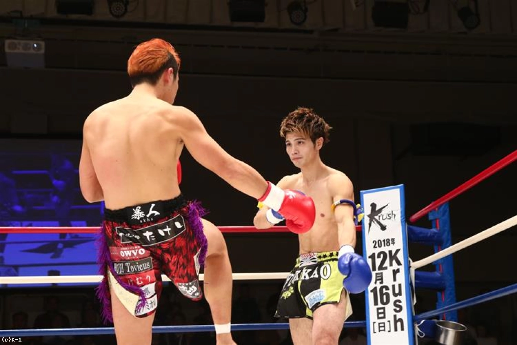 今そこにいる武尊選手をはじめとしたすごい選手たちにメッセージはないんですけど、そこまで行けない選手たちに言いたいのは、僕は最後も負けて全然いい選手じゃなかったんですけど、負けたくない気持ちだけで戦ってチャンピオンになれたので、今日負けてしまった人でも諦めずずっと続けてほしいかなと思います。諦めずに続ければチャンスがいつか来るので、忘れずに続けていってほしいと思います。