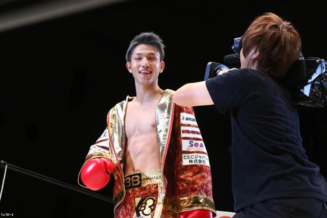 「もっと早く倒せるかなと思ったんですけど(山脇が)打たれ強くて焦っちゃいました。(対戦相手の印象は?)大阪時代に一緒に練習していたこともあって、その時よりも大分強くなっていたんで、これから楽しみやなって気持ちです。(今後の目標は?)今回しょっぱい試合しちゃったんですけど、今年は12月のK-1大阪大会に出るために頑張っているんで、次はそこ(K-1大阪大会)で試合をしたいです」