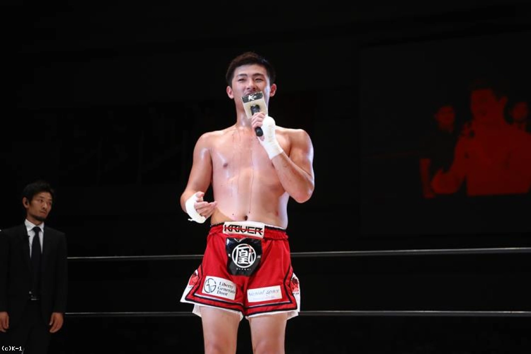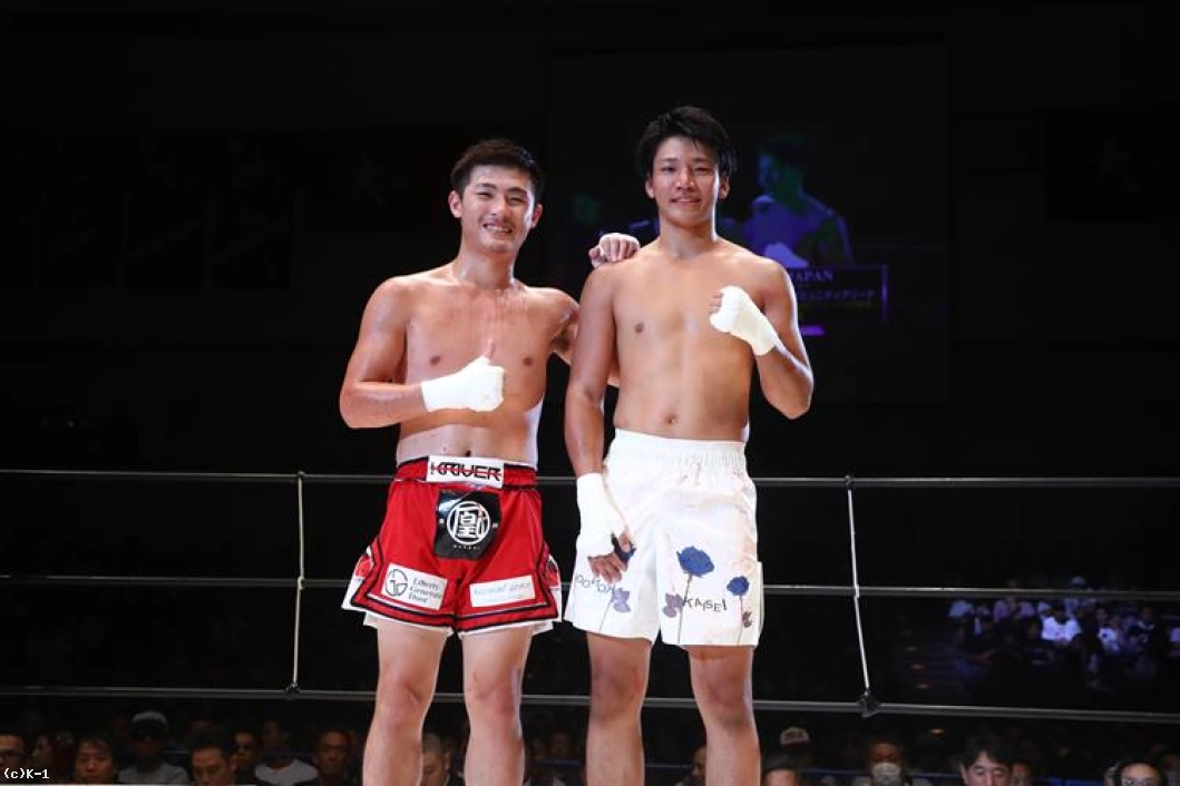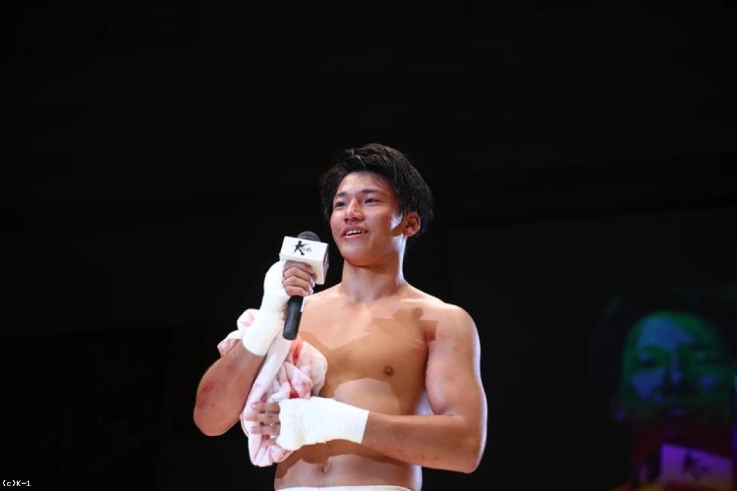 「今日本当はエキシビションっていう形だったんですけど、魁成はいま着実に強くなっていて、僕が魁成と同じ年の頃、高校2年生の夏の終わりで木村"フィリップ"ミノル選手に負けて初めて人生で挫折を味わいました。でも僕はそこからすごく強くなれたので、魁成とは特別試合という形でしたけど、スパーでなくこうやって殴り合えば何か感じ取ってくれるかなと思いました。やっぱり魁成は強かったし、僕もあの頃の気持ちを取り戻せました。魁成は僕より才能もあるしこれから強くなるので、僕もこれから強くなりますが、魁成のことも応援してくれればと思います」