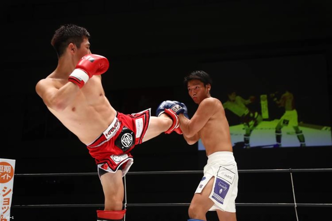 1R、ともにオーソドックスから左ミドルを蹴り合う。平本はサウスポーにも変わり、左ロー、左ミドルを当てる。近藤がロープに詰めるが、平本は追い詰められた感じはなく、右ロー、左ミドルを変わらず当てていく。平本がサウスポーから放った左インローに近藤は思わず体勢を崩す。
