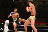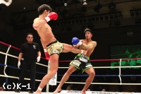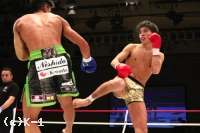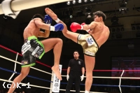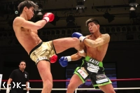 2R、攻めて出んとする海斗だが、加藤は右インロー、左ローと前進を止める。だが海斗も右ジャブ・左ミドルで加藤を攻め込ませない。加藤は右インロー、左ローと放って入れる。ダウンの挽回に向かいたい海斗だが、加藤が小刻みに放つ右インローに阻まれる。