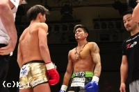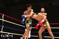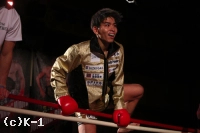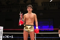 「(試合を振り返って?)自分のパンチがたまたま入って倒せたと思います。海斗選手はメチャクチャ強かったです。(対戦前と相手の印象に変化は?)変わらず強いってイメージです。どうやって倒すかが、自分の中でプレッシャーだったんで。勝っても海斗選手は凄く強いっていうイメージしかないので、これから自分もがんばっていきたいと思います。(今後の目標は?)K-1とKrushのチャンピオンを取ることです。あと、日本人トーナメントを8人で、-67.5kgでやったらおもしろいと思っていて。その一人に選んでもらえたら確実におもしろい展開になると思います」