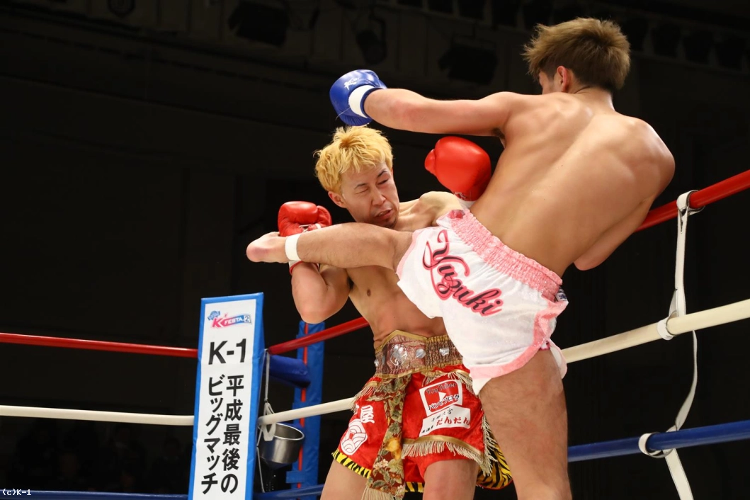 延長R、剣闘士は3Rのように前へ出ていくが、里見も容易にはそれを許さず、いったん横へかわし、左ミドルと左ストレートで剣闘士を下がらせる。だが、この攻勢をしのぐと剣闘士は再び前に出ていく。右ボディストレートを決める剣闘士だが、里見はハイキックとストレート。剣闘士は目の周辺から里見の攻撃で出血が見られる。ダメージがあるか、剣闘士はやや動きが落ちる。なおも前に行く剣闘士だが、里見は下がらせられながらも右フックと左ストレートで応戦して試合を終える。判定は3者10-9で里見。3Rの劣勢を延長戦でひっくり返し勝利を上げた。