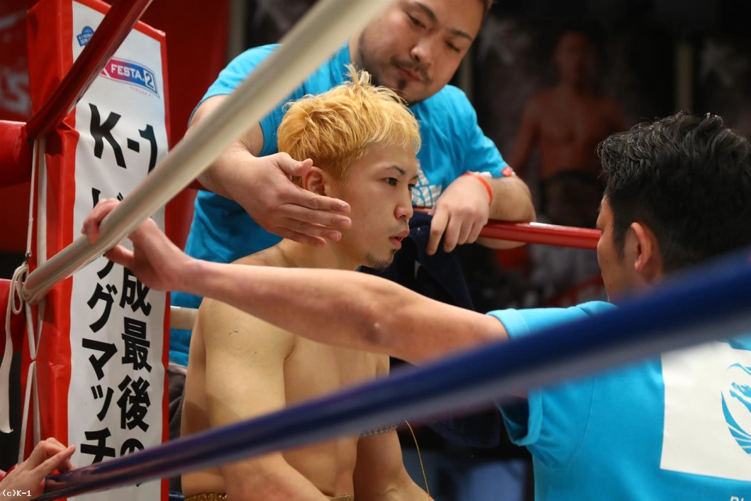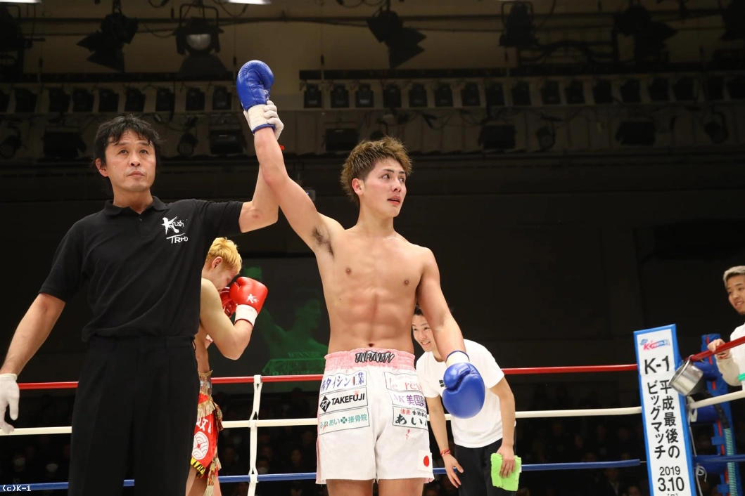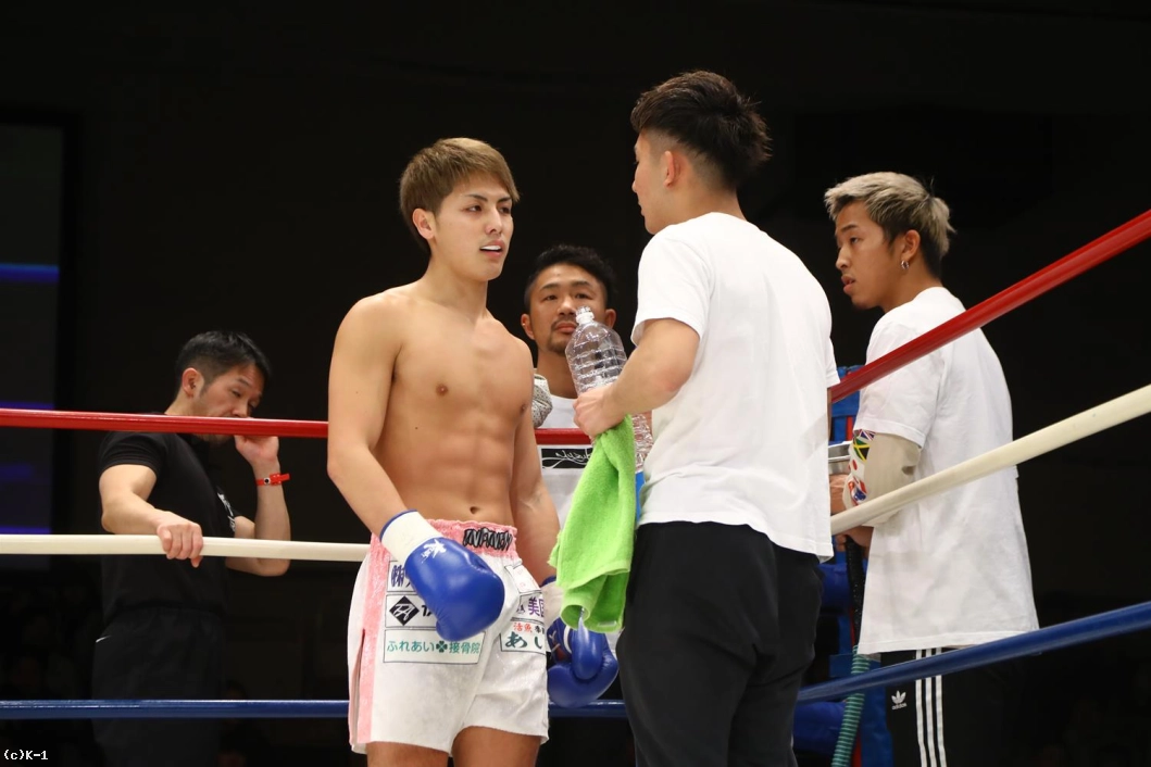 「(試合を振り返って?)相手が強くて、勝者は自分ですけど、俊選手の健闘も称えてほしいです。(対戦相手の印象は?)気持ちが半端なく強くて。ちょっと自分が油断してた部分、調子に乗って余裕をこいてたのが反省点ですね。(今後の目標は?)自分の一番の取り柄のKOができなかったのが反省点です。もっと練習して強くなりたいので、これからも変わらず応援お願いします」