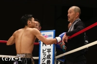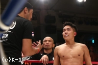 「(試合を振り返って?)Krushのデビュー戦ということで、もちろん蹴りの対応をしてきて、そこに関しては少なからずできたのかな、と。でも、倒せなかったのは自分の弱さ、それだけですね。(対戦相手の印象は?)林選手は映像のとおりタフで、パンチが当たっても向かってきたので。まあ、勝てたんで次にはつながったと思いますが、ダメですね。会長にも怒られると思います。(今後の目標は?)プロボクサーでやってましたが、今後はキックボクサーとして成長できれば。これから盛り上げていければいいなと思います」