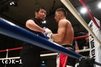 「(試合を振り返って?)久しぶりに勝つことができて安心しているのとうれしいのと、1RKOという最高の結果を残すことができて。チームキングスと、解散になったんですけどフリーホークのみんなにも感謝してます。(対戦相手の印象は?)パンチが強いと思ってたんですが、蹴りもけっこう蹴ってきて、思った以上に焦った部分もありました。でも、二回目のダウンを取ったときに残り30秒だったんで、絶対に倒しきろうと思ってラッシュかけたら、KOすることができたんでよかったです。(今後の目標は?)僕の階級のチャンピオンが同じジムの鈴木勇人選手なんですけど、鈴木選手がK-1のチャンピオンになったときに、Krushのタイトルマッチができるくらいの選手を目指してがんばりたいと思います」