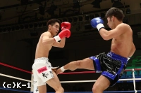 3R、藤田は離れた距離から前蹴りを腹・脚へと小刻みに送る。橋本は左ミドルを返し、藤田のわき腹に滑り込ませる。藤田が出ていこうとすると橋本は左インローでストップ。そこから前蹴りを顔面に連発で送り優勢となる。しかしここで藤田が右ロングフックをヒット。橋本がグラつき、橋本に傾き掛けた流れを藤田が手元に手繰り寄せる。パンチで迫る藤田に橋本は跳びヒザ、前蹴りと打ち返すが、藤田もやはりフックで応戦して終える。判定は3者30-29で藤田。ハイレベルな戦いを制し、デビューから2連勝を飾った。