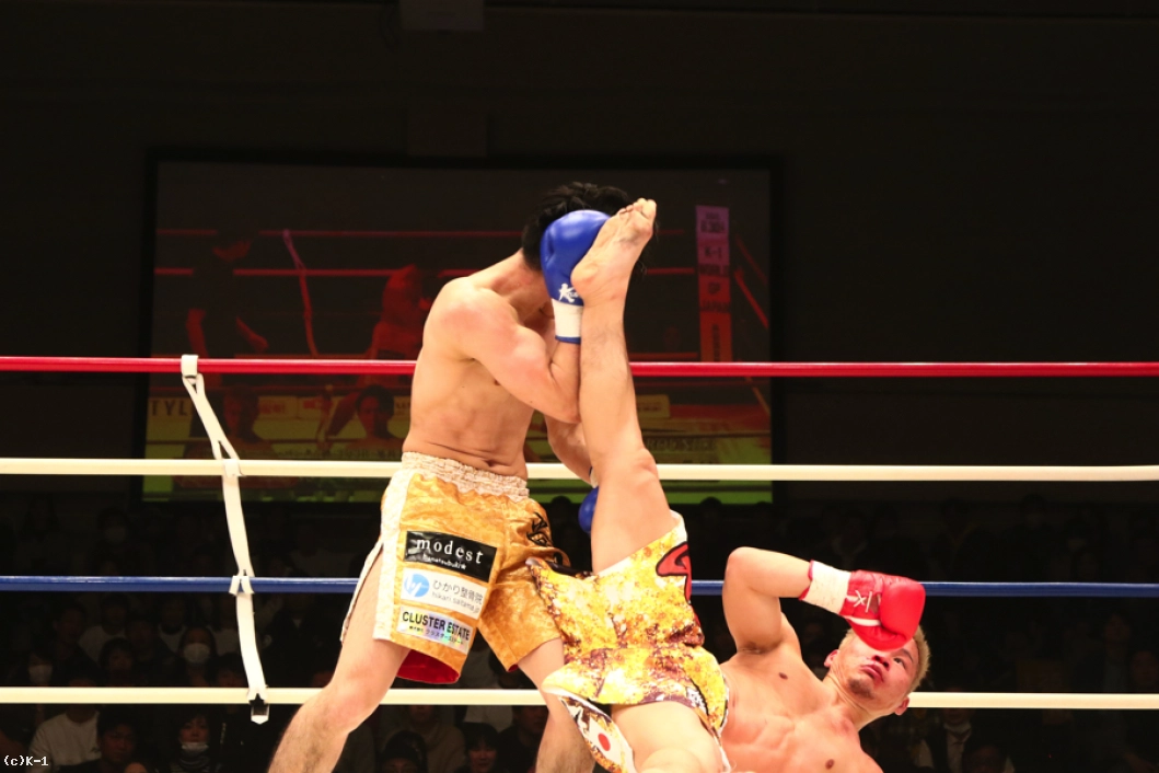 「(試合を振り返って?)今回は試合前にいろいろあって、精神的にちょっときついこともあったんですけど、こうしていい状態で上がれたので、いい経験になりました。今後に活きると思います。(対戦相手の印象は?)試合前の印象としてはプレッシャーが強いと思ったんですが、やってみたら意外と自分もプレッシャーをかけることができて。作戦どおりにできた面が多かったので、全体的によかったと思います。Krushらしくパンチで倒せましたし。もうちょっと引き出せればよかったかなと思います。(今後の目標は?)前から言ってますけど、Krushの(スーパー・バンタム級新王者の)初防衛戦の相手を狙っているので。それに向けて次の試合もKOで勝って、アピールしたいと思います」