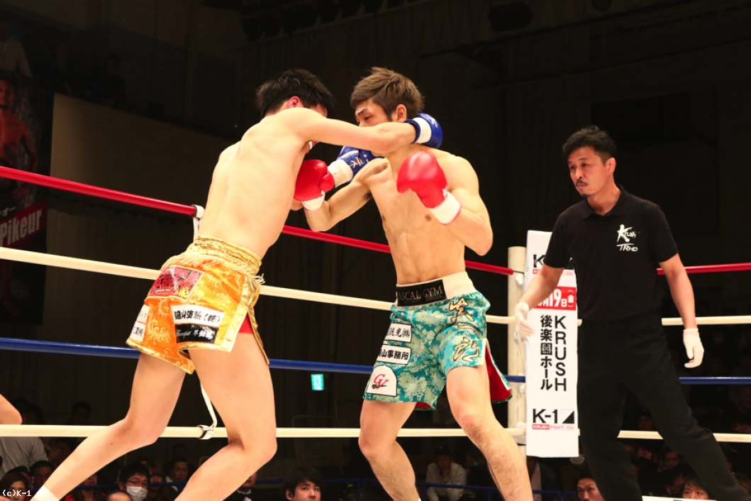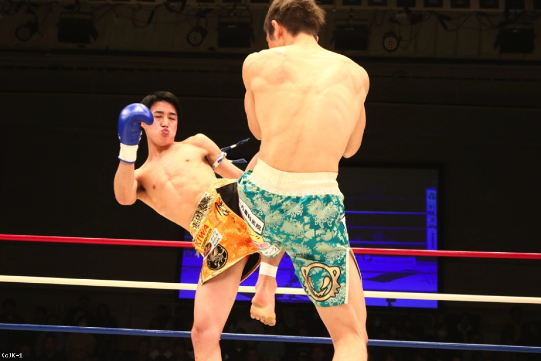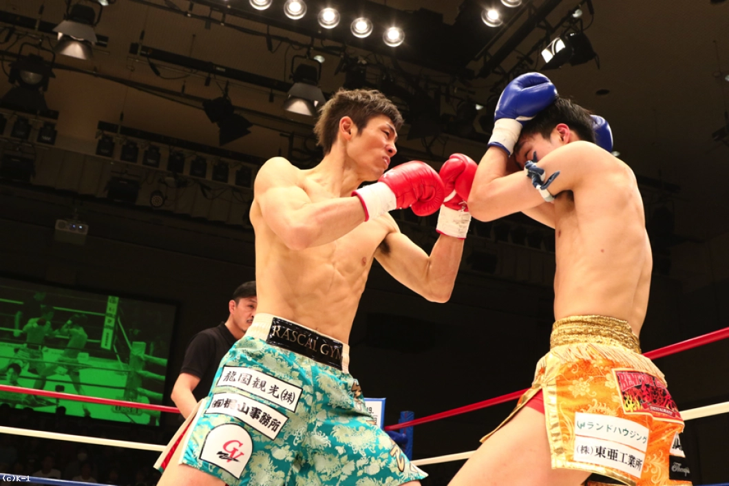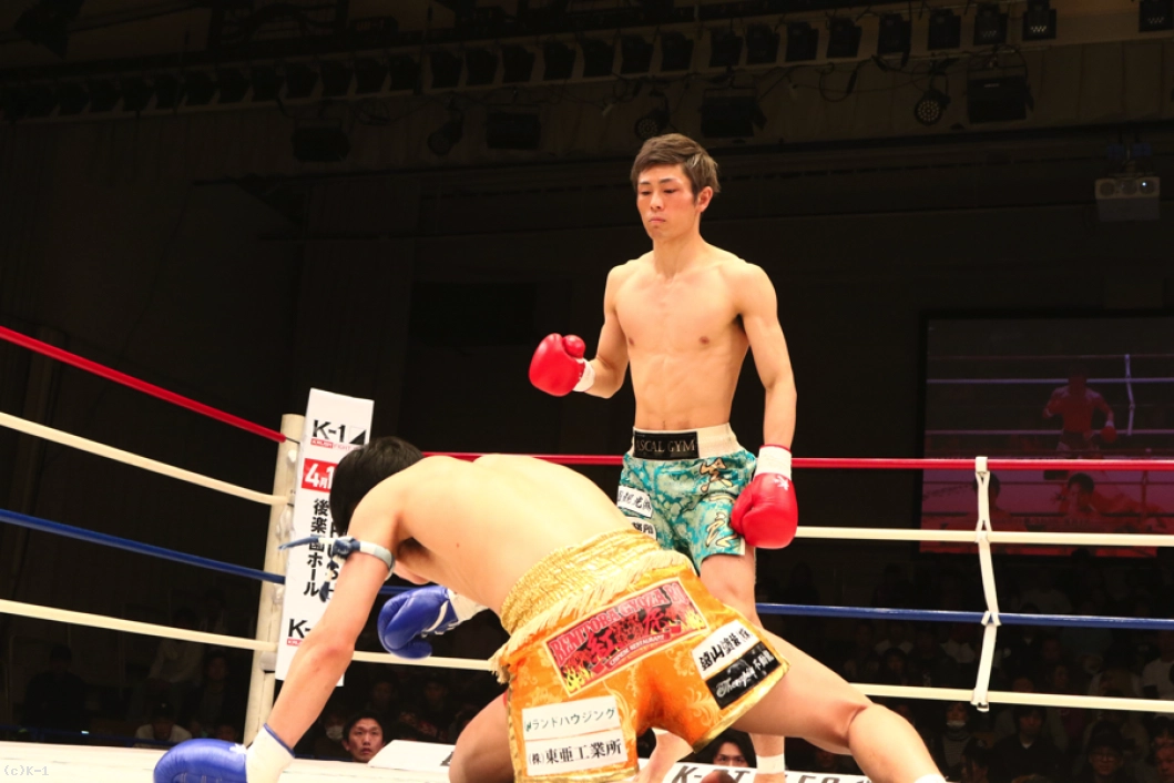 1R、瓦田が右ミドルを連発して先制。そこから前に向かうが、川﨑が左フックで先制ダウンを奪う。立ち上がった瓦田は再び前に出ていくが、川﨑は懐を深くして接近を許さず、左フックで2度目のダウンを奪う。再開後、瓦田は立ち上がるとハイキックを放ち、遮二無二前へ出ていくが、組みつきが多くなってしまいレフェリーから注意を受ける。瓦田はダメージがあるか度々スリップを見せる。ジャブから立て直していこうとする瓦田だが、そこに川崎が左フック。これで三度(みたび)目のダウンを奪い、初回KO勝ちを決めた。