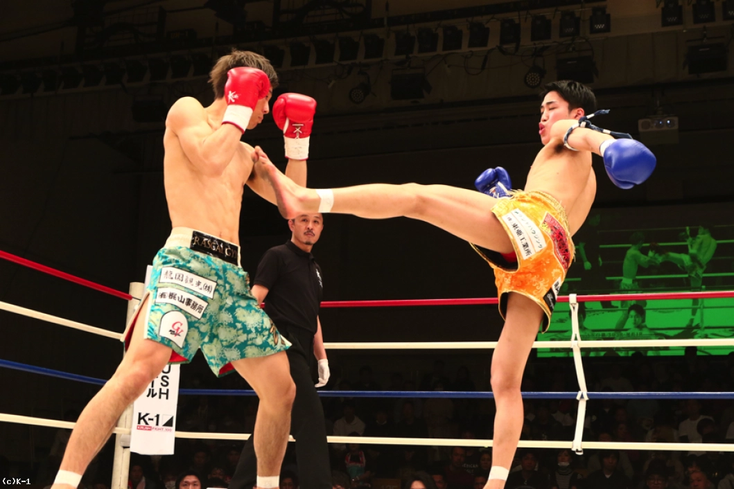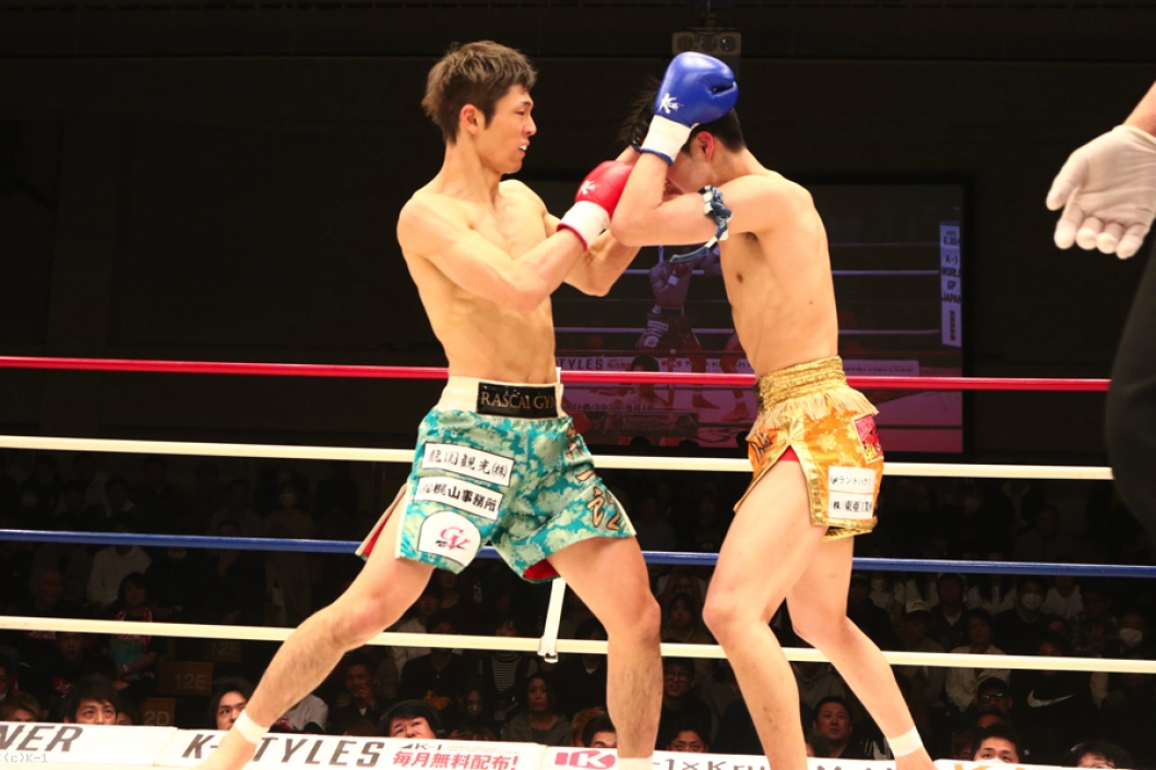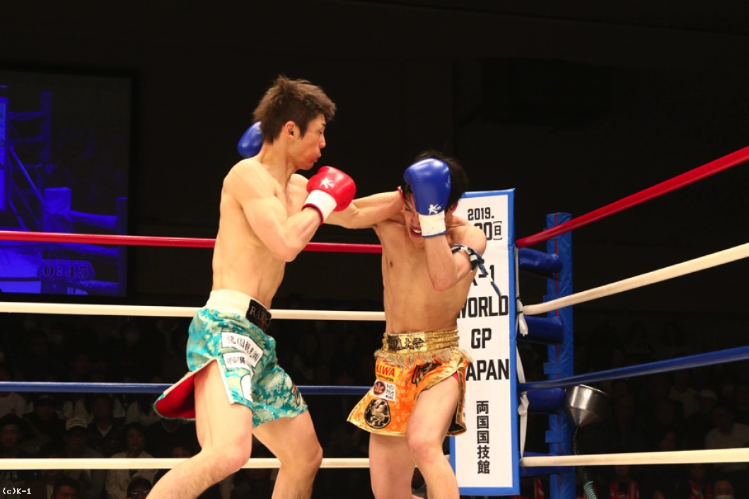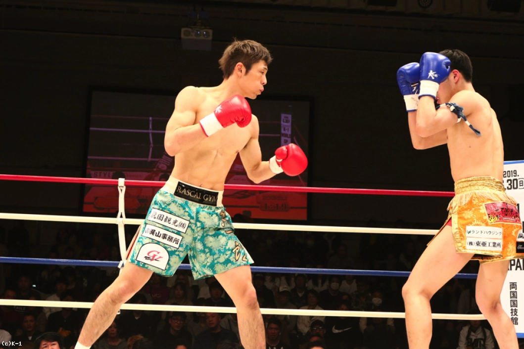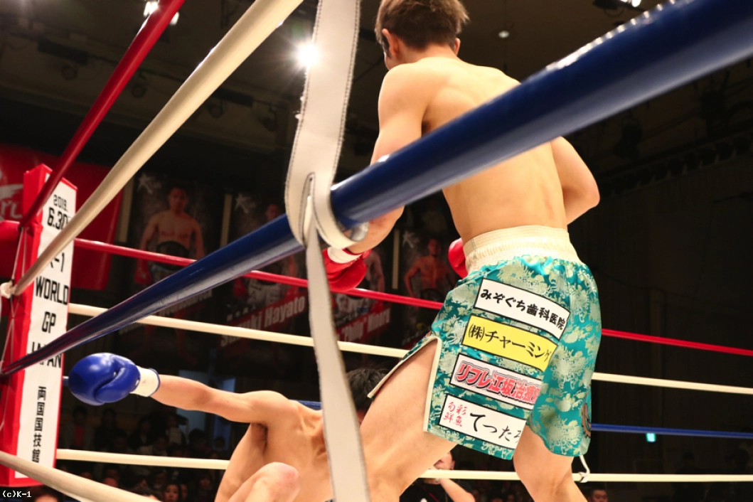 1R、瓦田が右ミドルを連発して先制。そこから前に向かうが、川﨑が左フックで先制ダウンを奪う。立ち上がった瓦田は再び前に出ていくが、川﨑は懐を深くして接近を許さず、左フックで2度目のダウンを奪う。再開後、瓦田は立ち上がるとハイキックを放ち、遮二無二前へ出ていくが、組みつきが多くなってしまいレフェリーから注意を受ける。瓦田はダメージがあるか度々スリップを見せる。ジャブから立て直していこうとする瓦田だが、そこに川崎が左フック。これで三度(みたび)目のダウンを奪い、初回KO勝ちを決めた。