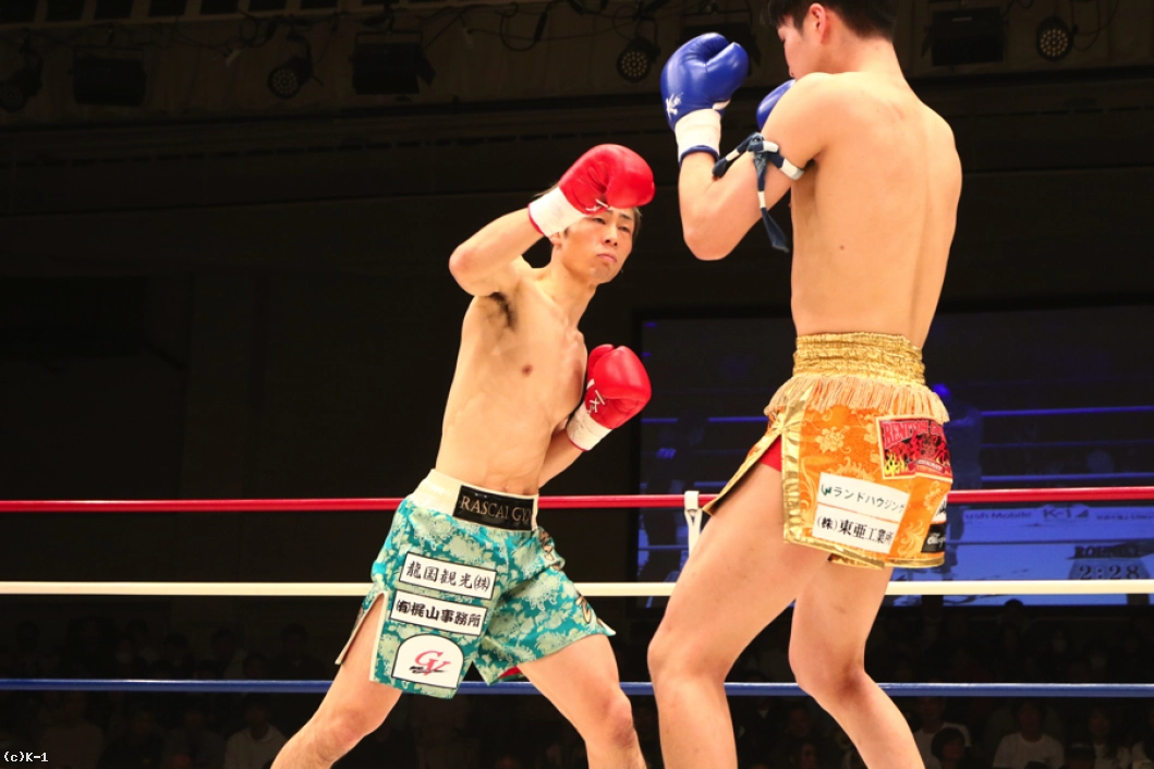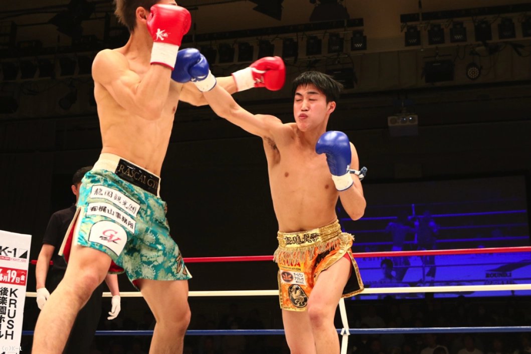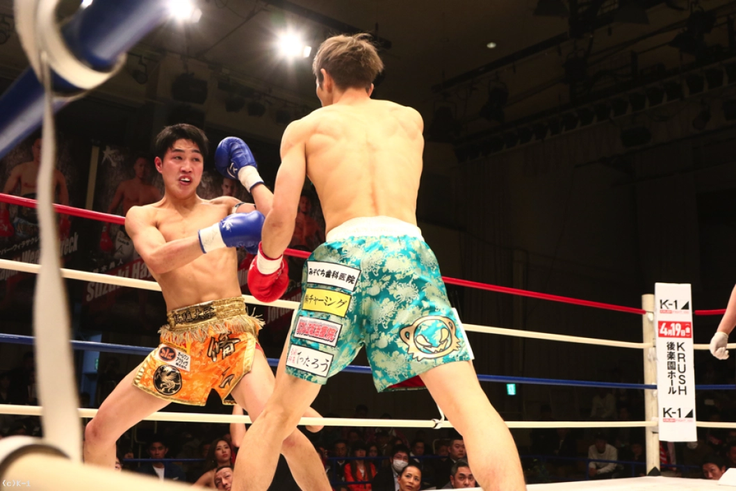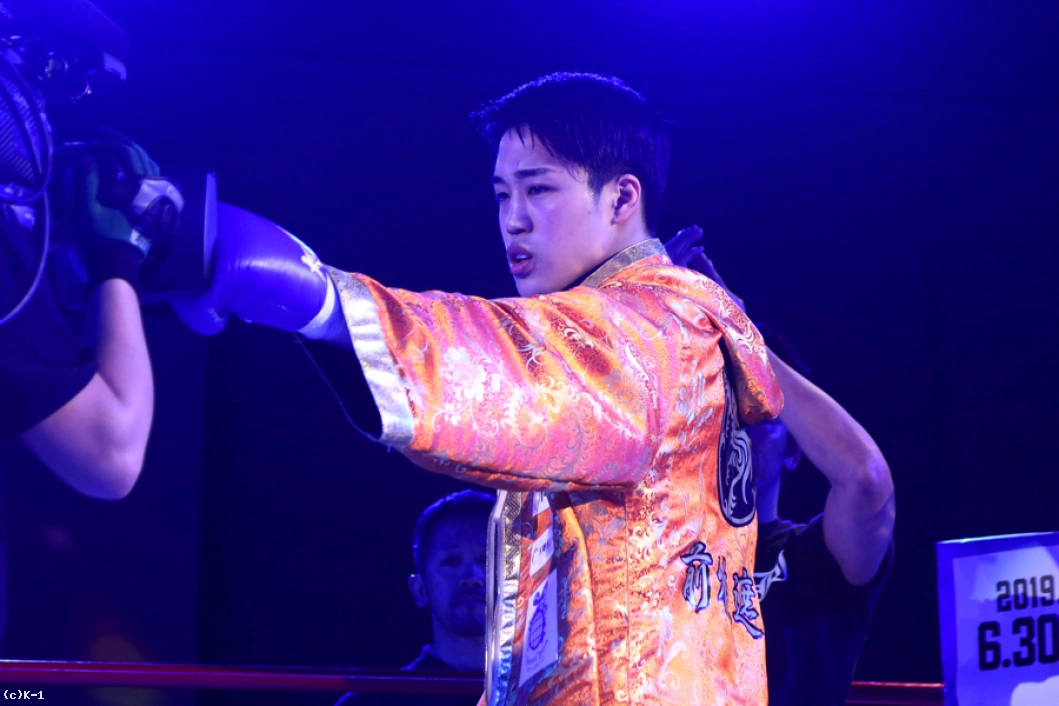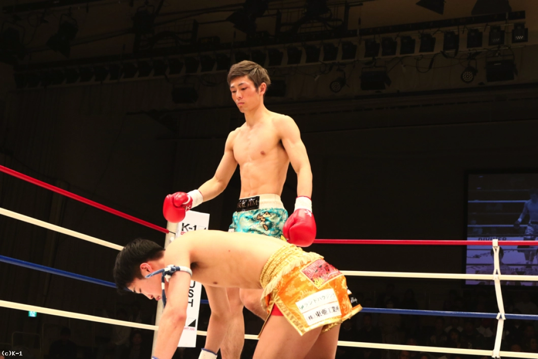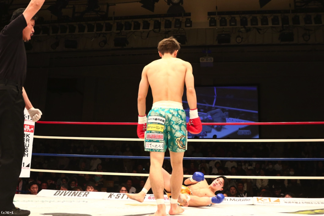 「(試合を振り返って?)ホントはちょっとやりたいことがあったんですけど、得意なパターンをやってしまって。そのへんは反省かなと思います。(対戦相手の印象は?)昨日もそうなんですけど、めっちゃ強いと思って、寝れないくらい怖くて。まあ、なんとか勝つことができました。最初にパンチで打ち合いに来てくれたので、そのへんはラッキーだなと思いました。(今後の目標は?)Krushのライト級のベルトはゴンナパー選手が持ってると思うんですけど。いきなりは無理なんで、まずは一つずつ格上の選手を倒していきたいと思ってます」