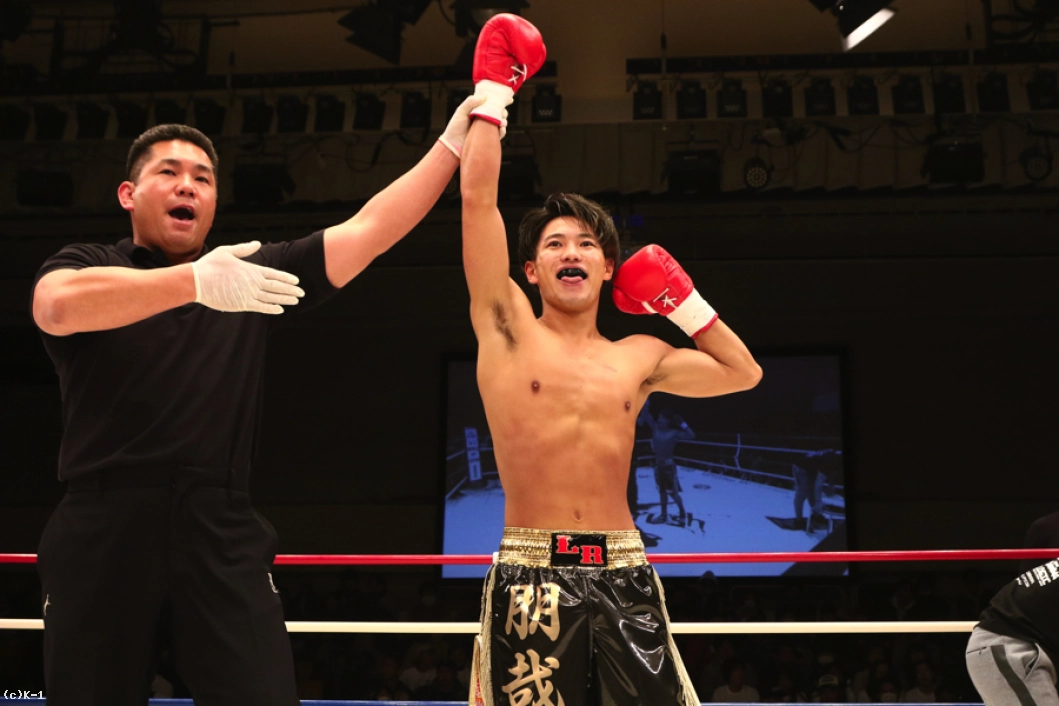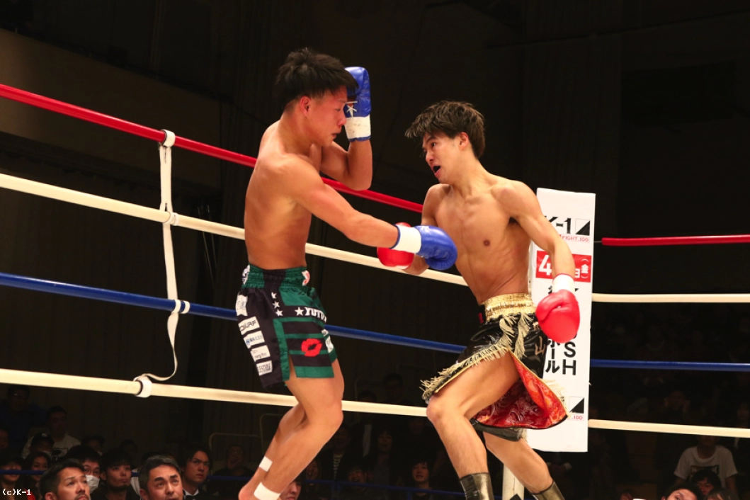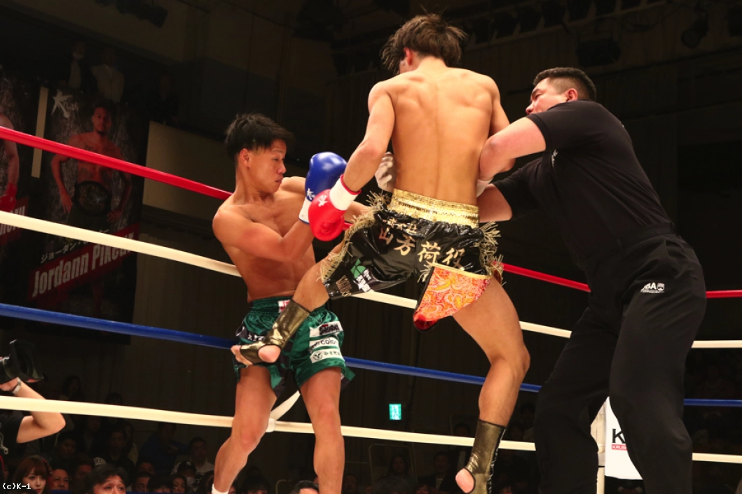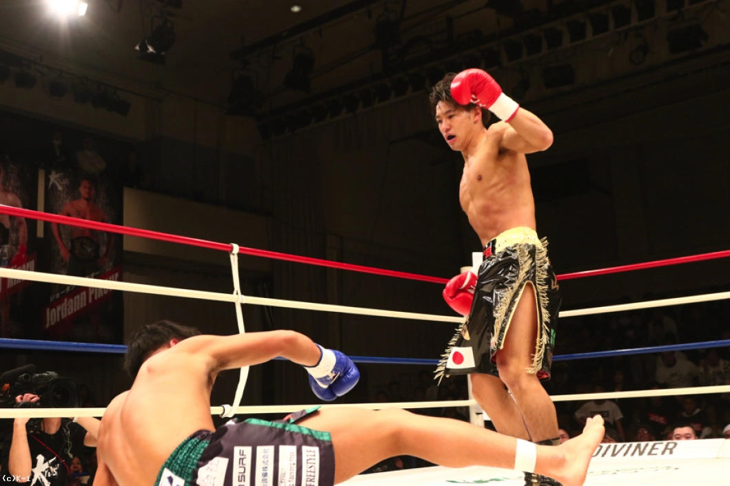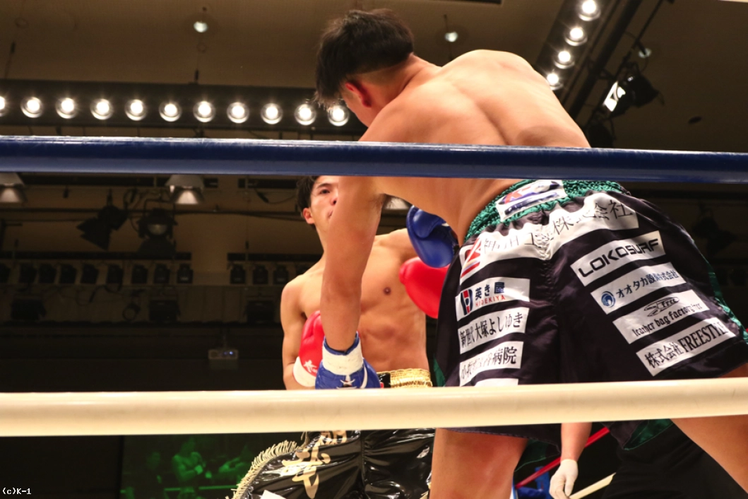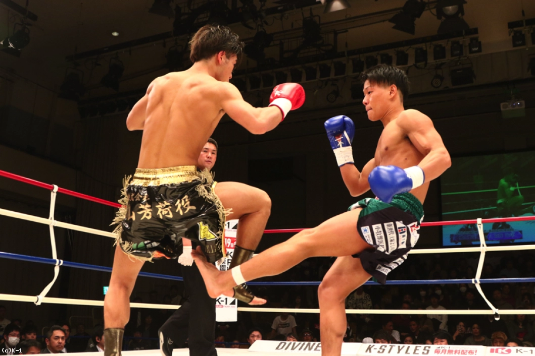 スーパー・フェザー級で上り調子の横山と斎藤が激突。1R、サウスポーの横山に対し、斎藤はオーソドックスから前回KOを見せたバックスピンキックを飛ばす。左ロー、左ミドルと連続で飛ばしていく横山。斎藤はこの蹴りに足を持って行かれややバランスを崩す。スピードのある横山は左ストレート、顔面ヒザ、左フックと猛攻。斎藤は足をフラつかせながらも耐えるが、横山が左ストレートを打ち込んでダウンを奪う。なんとか立ち上がる斎藤だったが、横山は再び左ストレートを打ち込んでダウンを奪い、KO勝利を収めた。