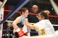 3R、前に出ていく壽美。だがヨセフィンは左回りして横蹴りでこれを押さえる。それでも壽美が前に来ると、ヨセフィンは右クロス、左フックとカウンターでとらえる。距離があけば後ろ回し蹴りを狙い、ヨセフィンは技の多彩さを見せる。右ストレートを振るいながら出たヨセフィンは、そこから壽美に組みつくと圧力で押していく。打ち合いを仕掛ける壽美だが、ヨセフィンを押していけない。判定は30-28、30-28、30-28の3-0でヨセフィン。女子トップファイターの実力を見せた。