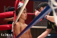 3R、間合いを詰めていく清水だが、アリはこれをヒザ蹴りで迎え撃つ。そして距離が開くと清水に右ハイを連打。そして顔への跳びヒザ、右アッパーの連打でスタンディングダウンを奪う。ファイティングポーズを取る清水だが、左目周辺から出血が見られドクターチェック。そのままストップとなり、アリがデビュー戦をTKO勝利で飾った。