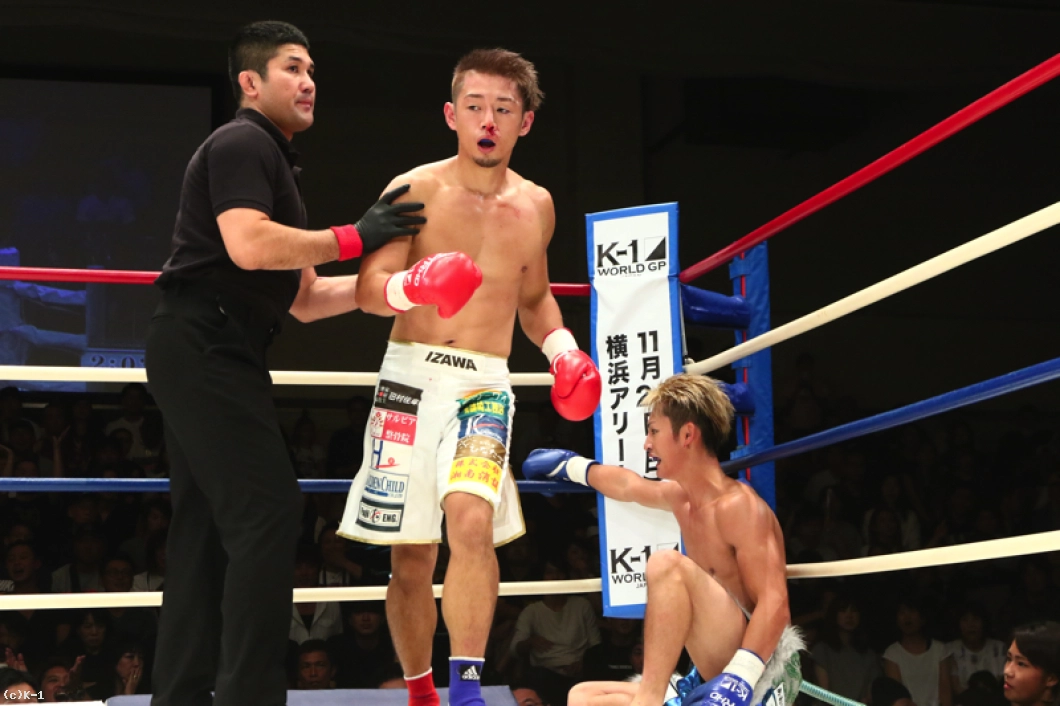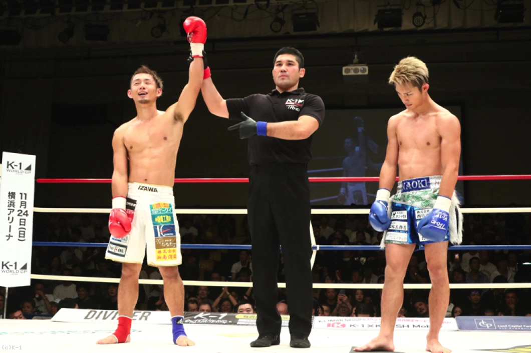 延長R、伊澤は一気に前へ出ると、髙橋がダメージを見せる奥足にローを集中。髙橋はダメージを隠せなくなり、体勢が流れたところへ伊澤はフックを打ち込みダウンを奪う。伊澤はローを緩めず、ハイキック、右フックと猛攻。KOを迫るが髙橋も倒れない。伊澤はさらにボディへのヒザ、ストレート、胴回し回転蹴りと髙橋を攻めて延長を終える。判定は3者10-8で伊澤。延長でダウンを奪い、優勢を明らかにして勝利した。