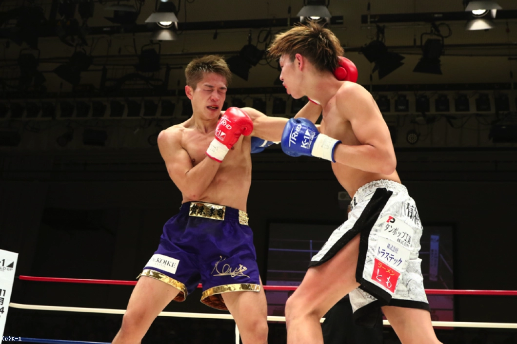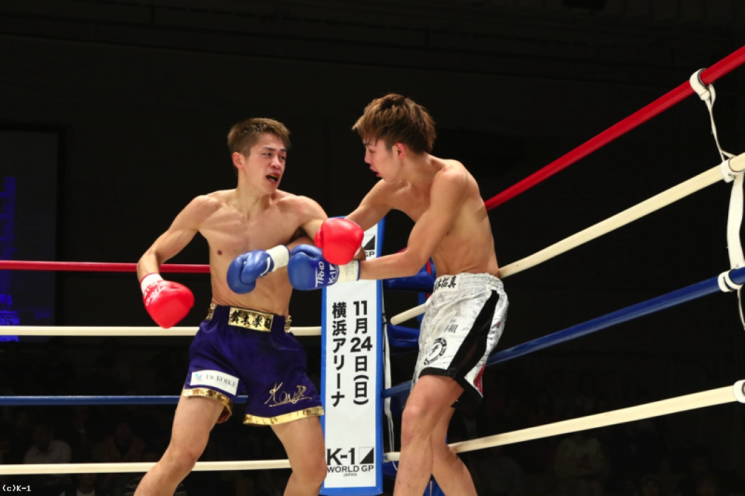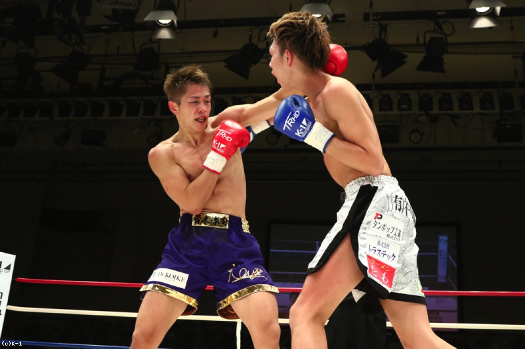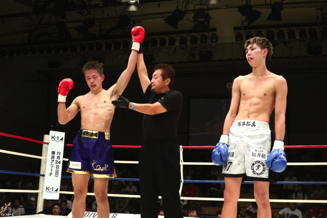 3R、ダウンを喫している塚本は鈴木の前進に対しボディにヒザ蹴り。これで鈴木を下がらせんとするが、鈴木はやはり前に出ていく。このラウンドは塚本が手数多く攻め、左右ショートストレートにフック、そしてボディへのヒザと繰り出す。手数では劣る鈴木だが、押し込みとガードで致命傷は避けている。判定は29-27、29-27、29-27の3-0で鈴木。プロ2勝目を決めた。