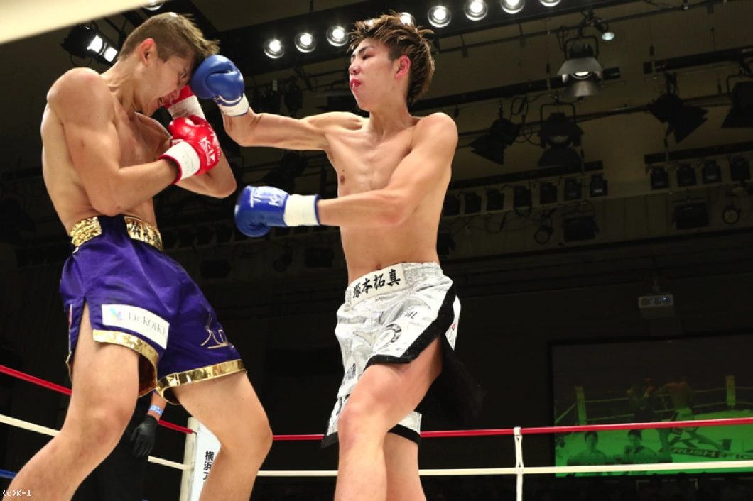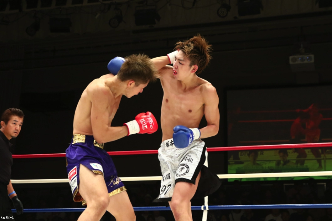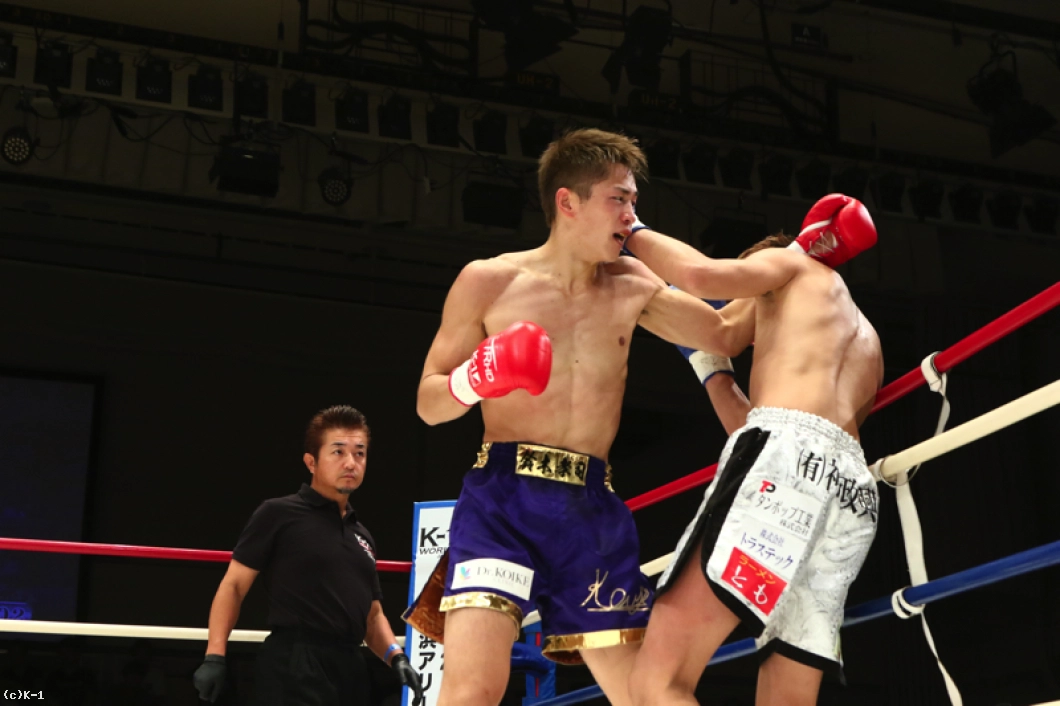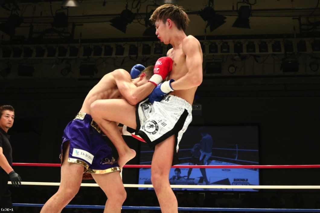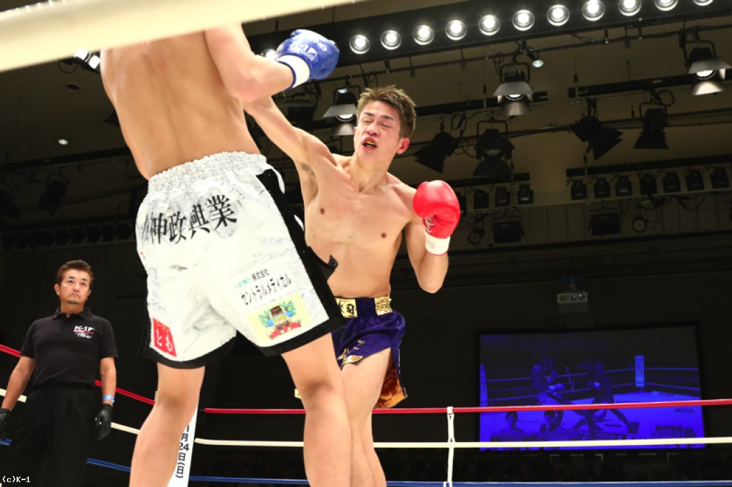 3R、ダウンを喫している塚本は鈴木の前進に対しボディにヒザ蹴り。これで鈴木を下がらせんとするが、鈴木はやはり前に出ていく。このラウンドは塚本が手数多く攻め、左右ショートストレートにフック、そしてボディへのヒザと繰り出す。手数では劣る鈴木だが、押し込みとガードで致命傷は避けている。判定は29-27、29-27、29-27の3-0で鈴木。プロ2勝目を決めた。