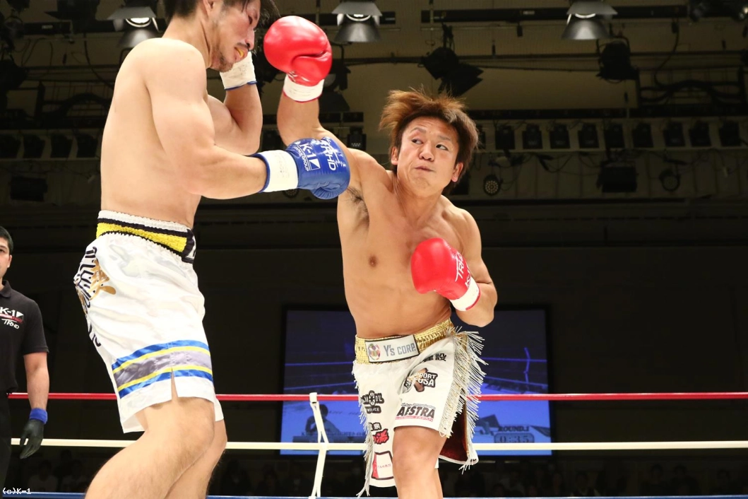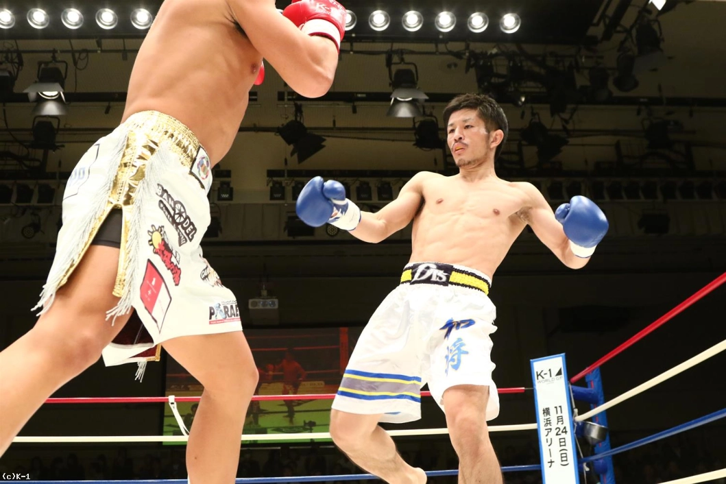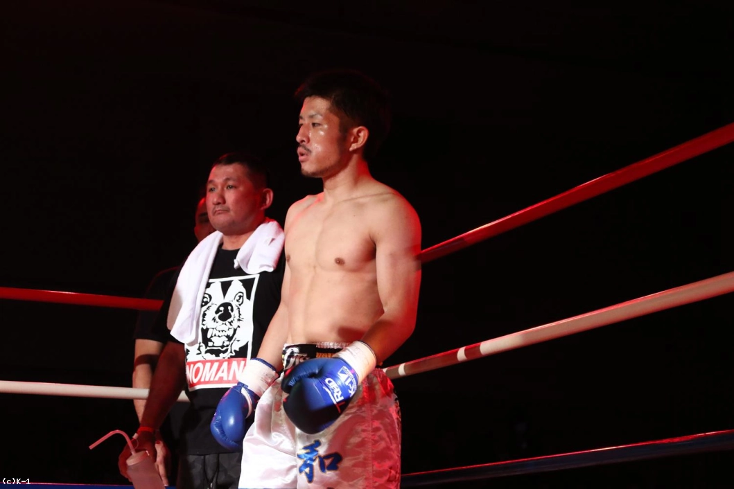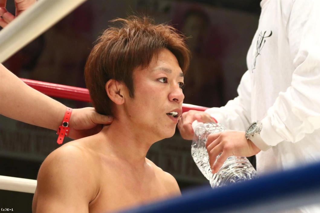 「(試合を振り返って?)三回くらいダウン取ったんですけど、倒しきれないのが悔いが残ります。(対戦相手の印象は?)空手をやってたっていうのはわかってたんですけど。今回早々に対戦相手、試合を飲んでくれたので感謝してます」