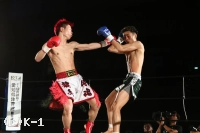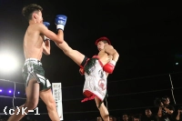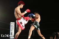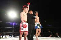 3R、距離を作った椿原はしかし踏み込んで右ストレートをヒット。ボディへのヒザでも黒田を攻める。椿原は続いて大きく距離を取り、顔面前蹴りを打ち込み、左フック、右ストレートと長距離砲でのカウンターを狙う。黒田もボディにヒザを入れ、フックに力を込めて椿原を追うが一歩及ばず。判定は30-29、30-28、30-29の3-0で椿原。黒田を退けて白星をあげた。