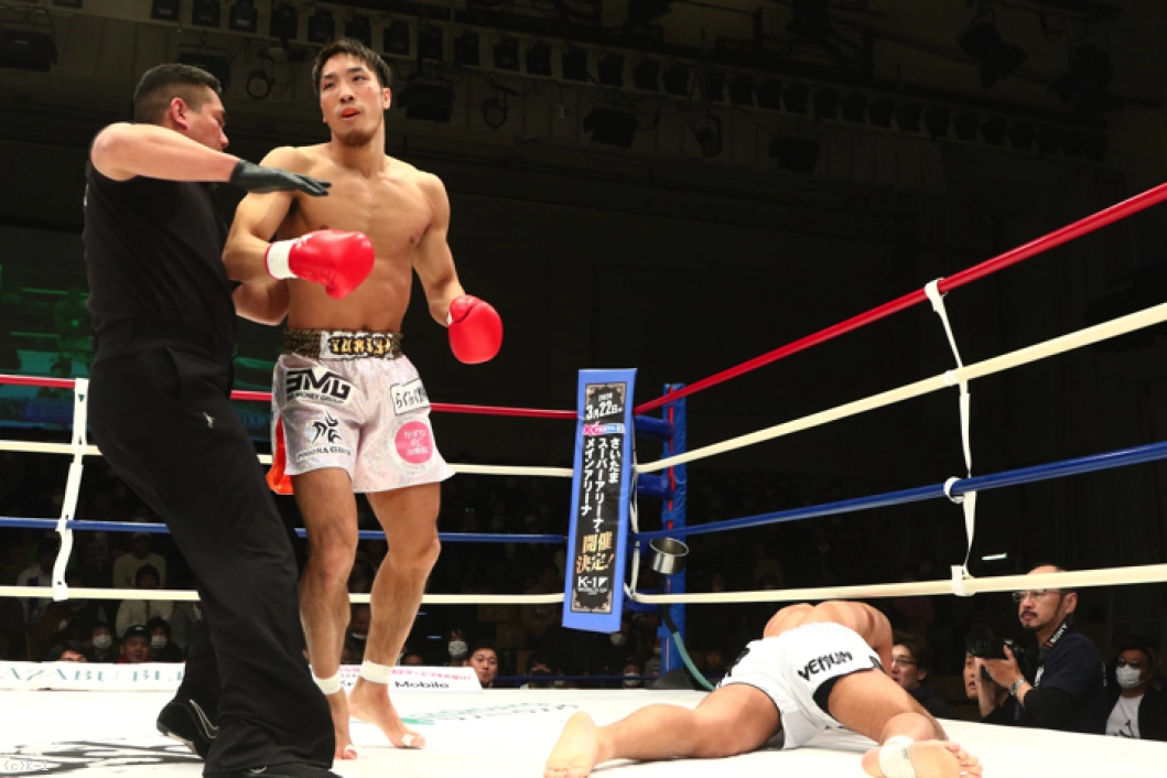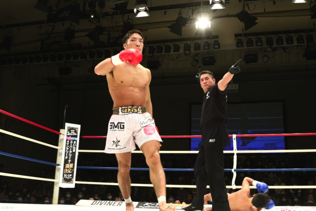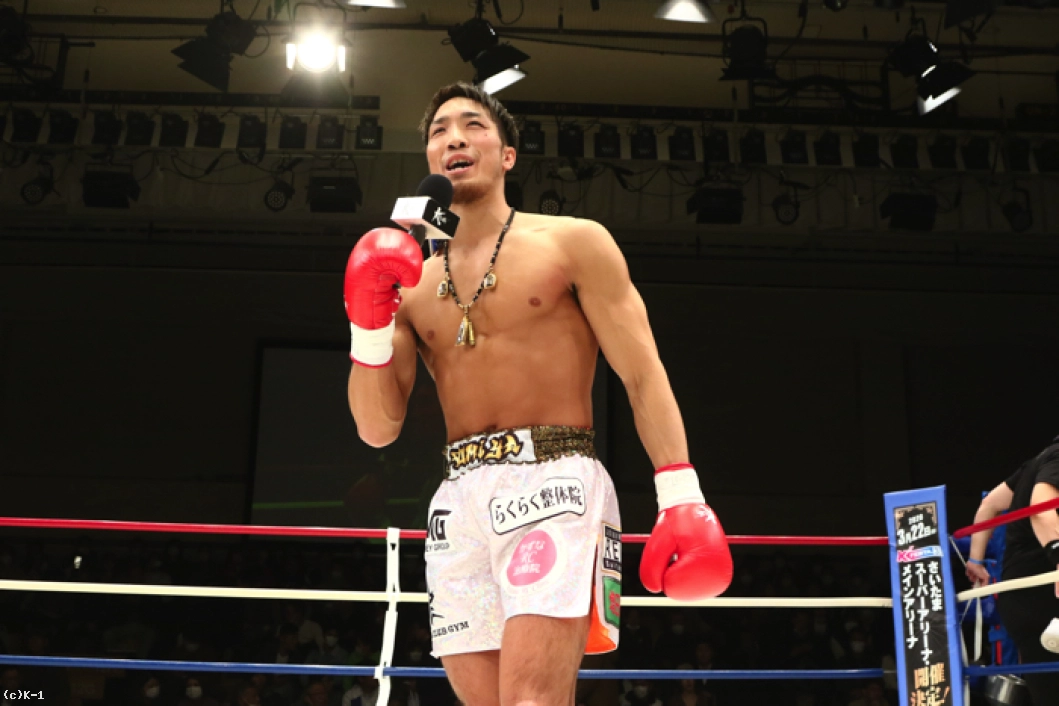 「(試合を振り返って?)ちょっと固くて、なかなかいい動きができなかったんですけど、KOで勝ててよかったです。(対戦相手の印象は?)身長が高くてリーチがあったんで、ちょっとやりづらいかなと思っていて。実際に試合中も中に入りづらかったですね。