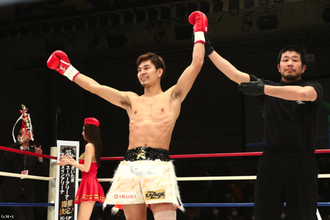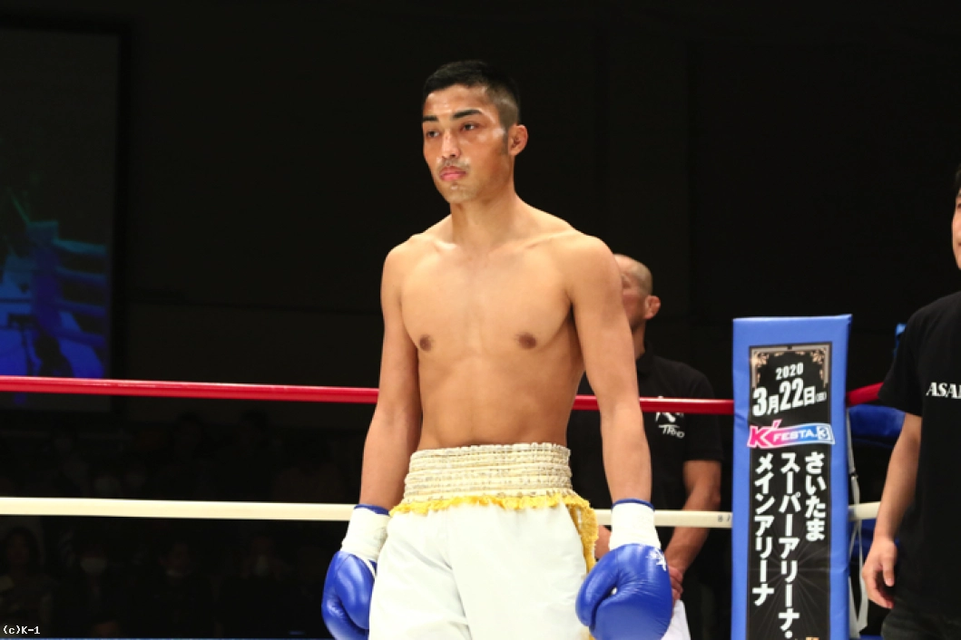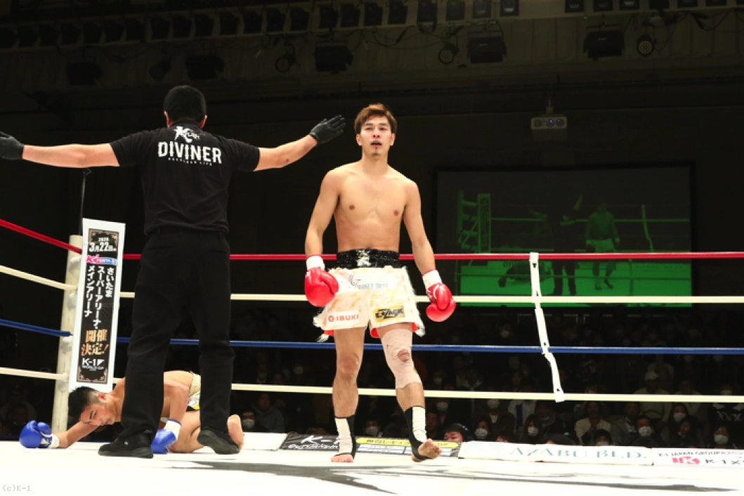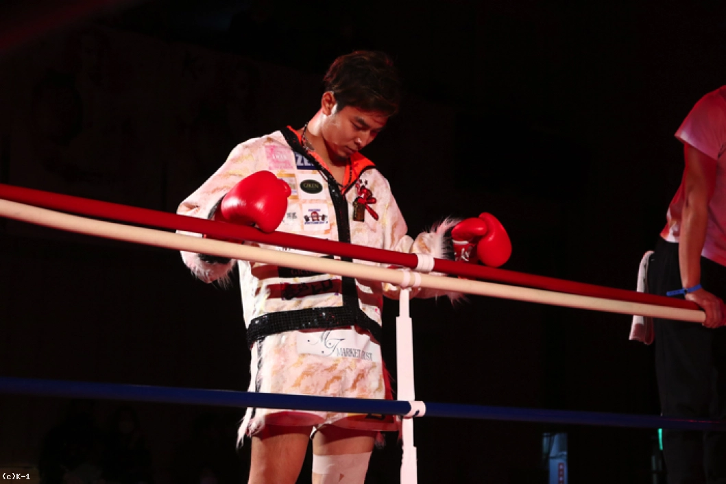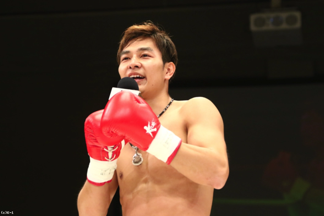 「(試合を振り返って?)ちょっと狙いすぎちゃって、最初固くなっちゃったんですけど。まあ、一回目のダウンも狙いどおりのカウンターのフックで取れたんで、よかったです。(対戦相手の印象は?)もっとガンガン来ると思ったんですけど、あんまり来なかったんで、やりやすかった感じはあります。(今後の目標は?)60kgだと減量ないくらいなので、Krushの57.5kgのベルトがいま空位なんで、そこをしっかり獲りたいと思います」