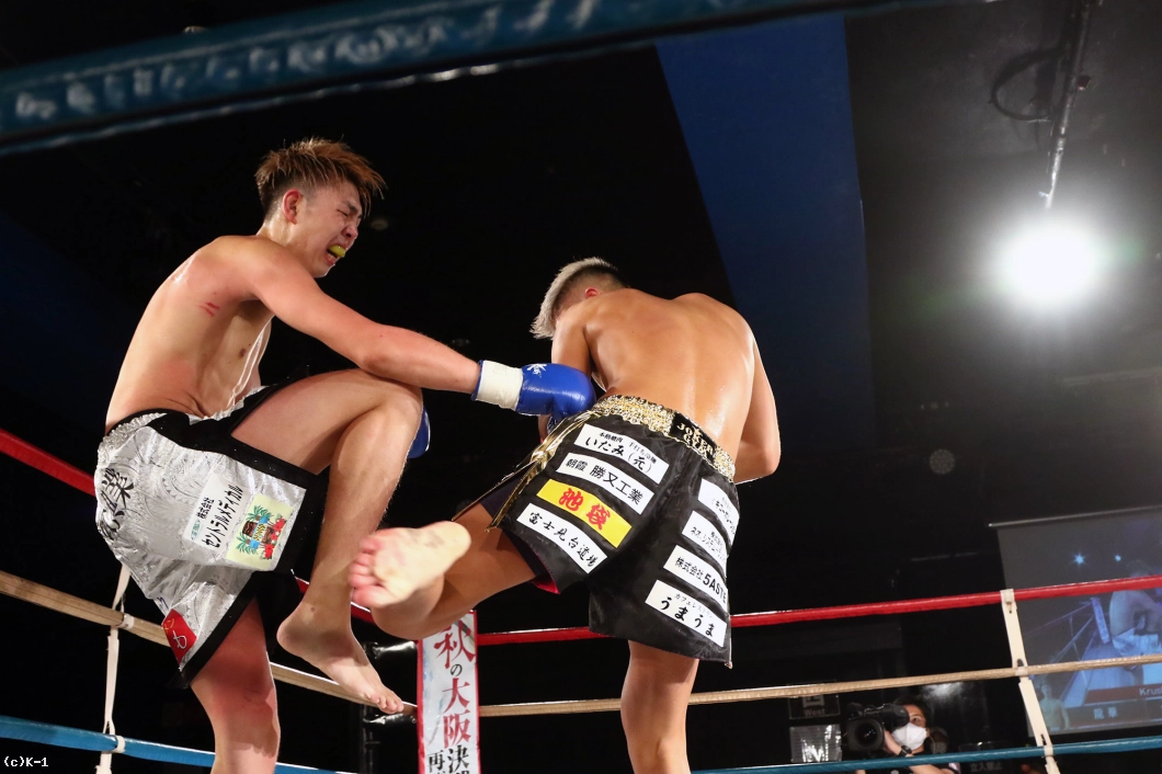 「(試合を振り返って?)1Rはいいペースで戦えたかなと思うんですけど、2~3Rはスタミナが切れて相手に攻められてしまって、反省すべき点がいっぱいの試合でした。(対戦相手の印象は?)試合前に2~3回、過去の映像を観たんですけど、気持ちの強い選手だな、と。いざ戦ってみて実際に気持ちの強い選手でした。(今後の目標は?)今回の試合でわかった自分のダメな点を改善して、K-1甲子園二連覇を成し遂げたいと思います」