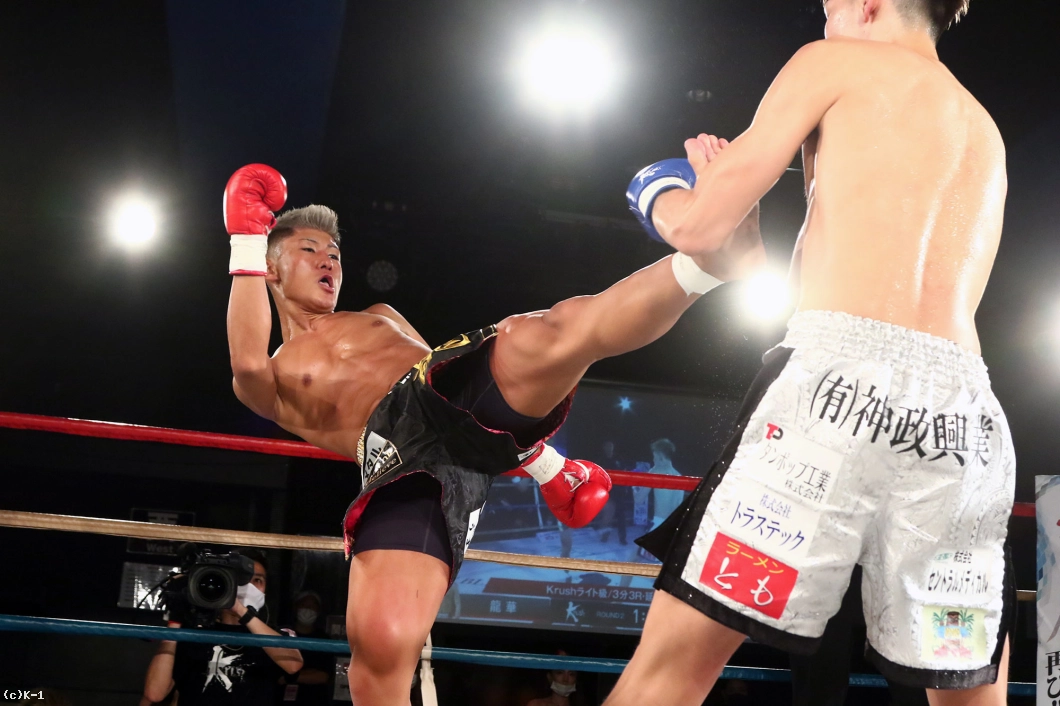 3R、龍華は塚本の奥足に左ローを連打。塚本は苦悶の表情を見せ、体が「く」の字になる。塚本は前に出ながら右ストレートとヒザで反撃。距離を詰められ龍華はこれまでのようにローを放てない。判定は30−27、30−27、30−28の3−0で龍華。これで5連勝とした。