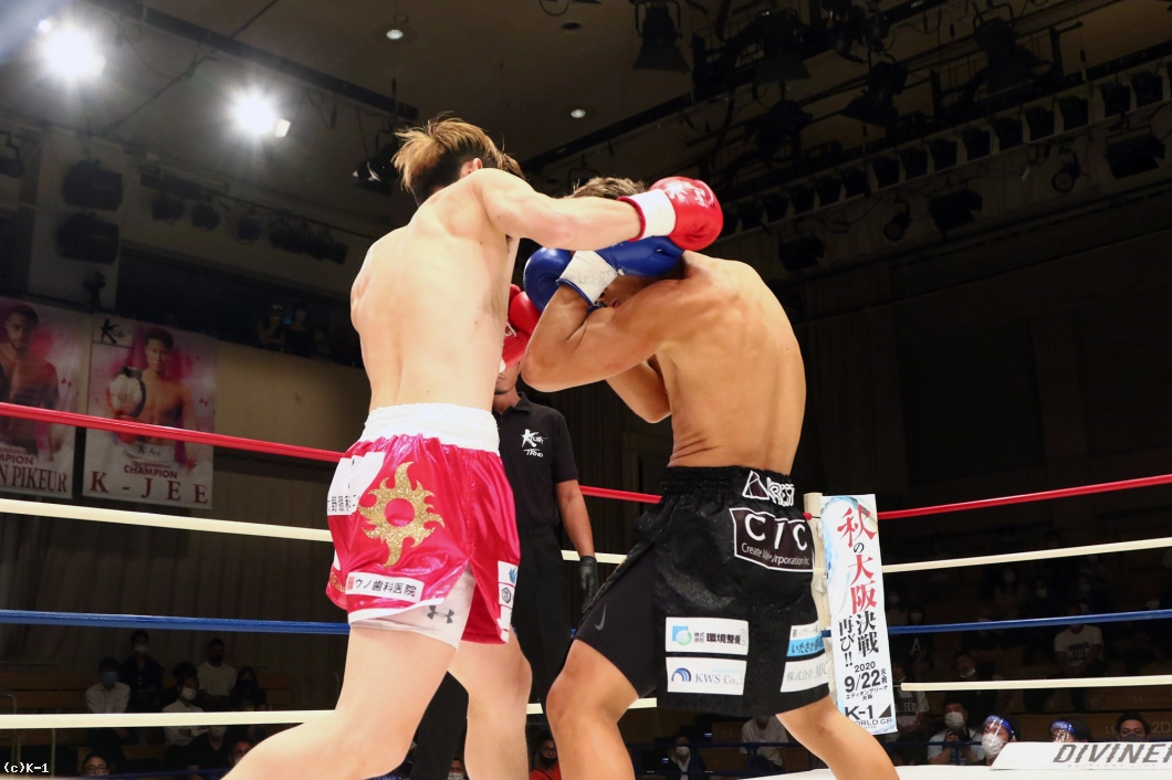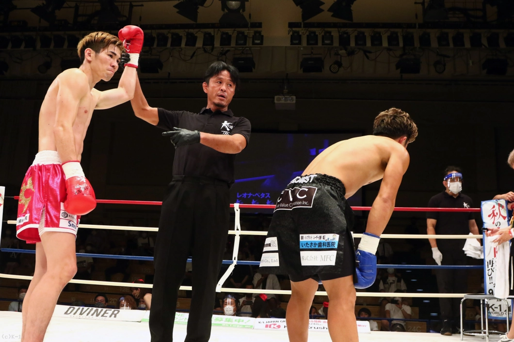 「(試合を振り返って?)試合は全然ダメな感じでした。課題がいっぱいあって、やってきたことが全然出せなかった試合でした。(対戦相手の印象は?)全然噛み合わなかったなっていう感じでしたね。(試合後の対戦アピールに武尊選手が応えたことについては?)今日みたいな試合をしてしまうと、絶対に(武尊には)勝てないんで。もし武尊選手と試合が決まったら、それまでに成長して、絶対勝てるようにしたいなと思います。(今後の目標は?)もっともっと成長して、K-1のベルトも巻きたいと思うので、みなさん応援よろしくお願いいたします」