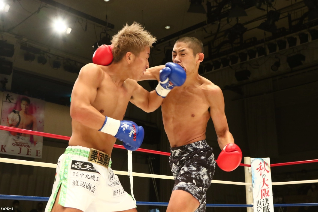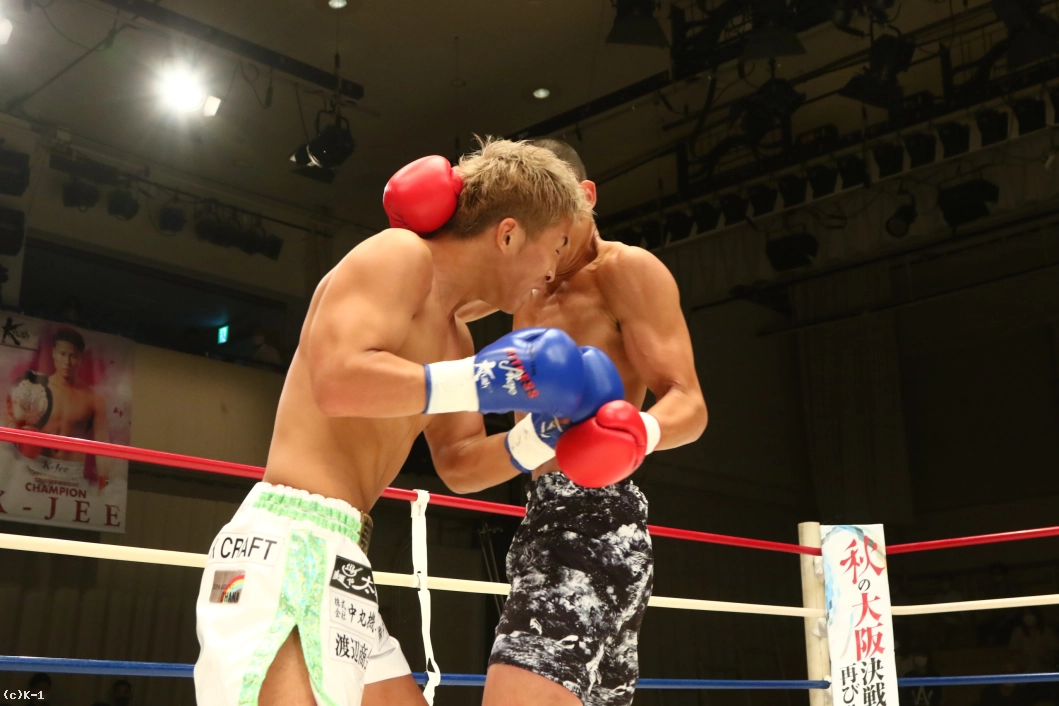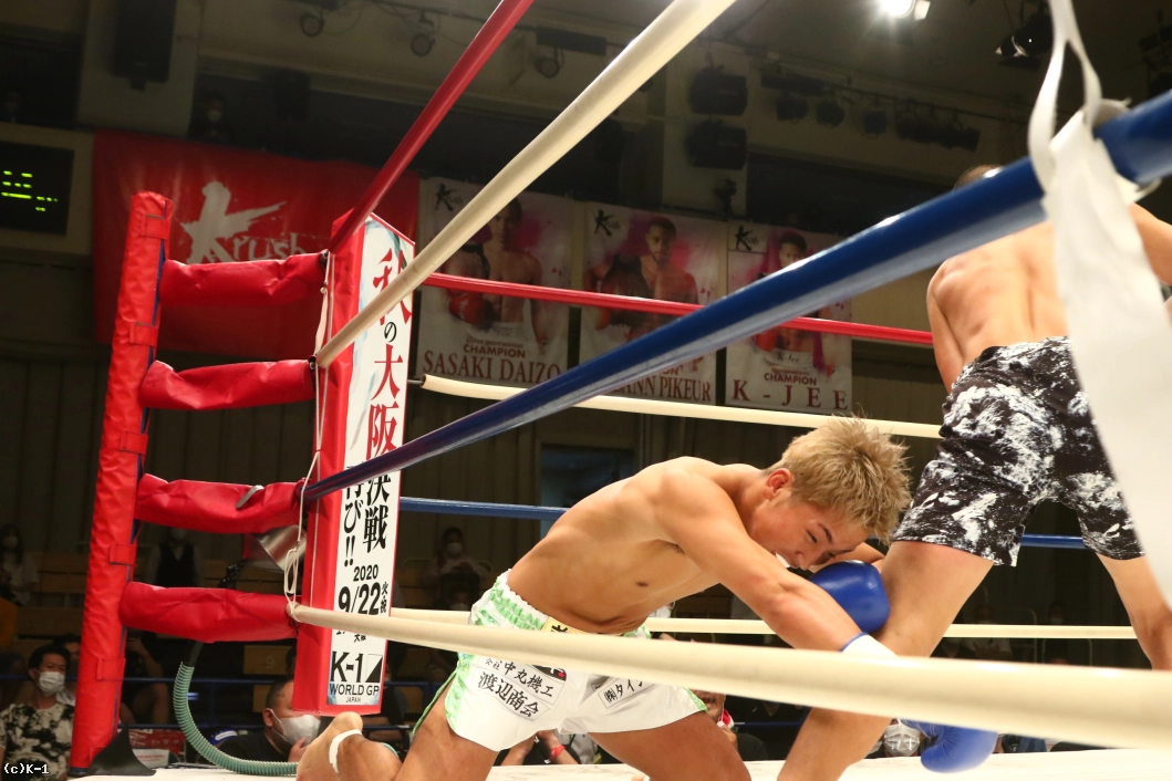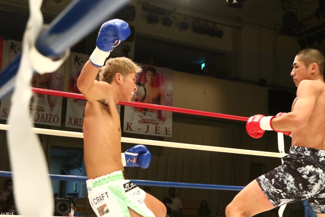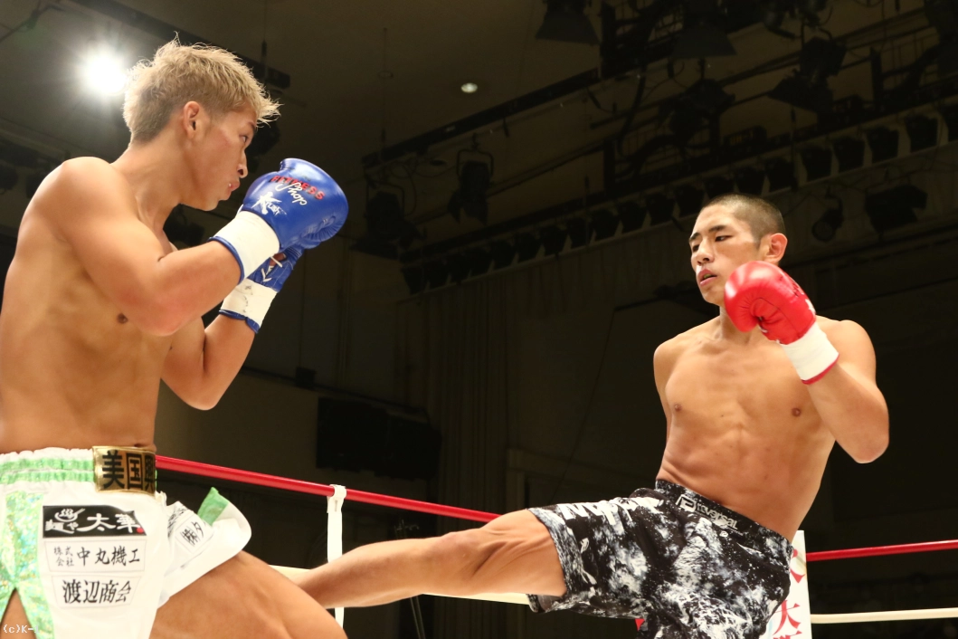 1R、両者ローの蹴り合いでスタート。ここはお互い互角か。そこから両者パンチを織り交ぜた攻防へ移っていく。右ストレートからの左フックでグラつかせた中野は、続けて右クロスを打ち込みダウンを奪取。そしてワンツーで飛び込んだ中野は、右ストレートのフェイントから左フックを瑠久のアゴに叩き込んで2度目のダウンを与え、レフェリーが試合をストップした。