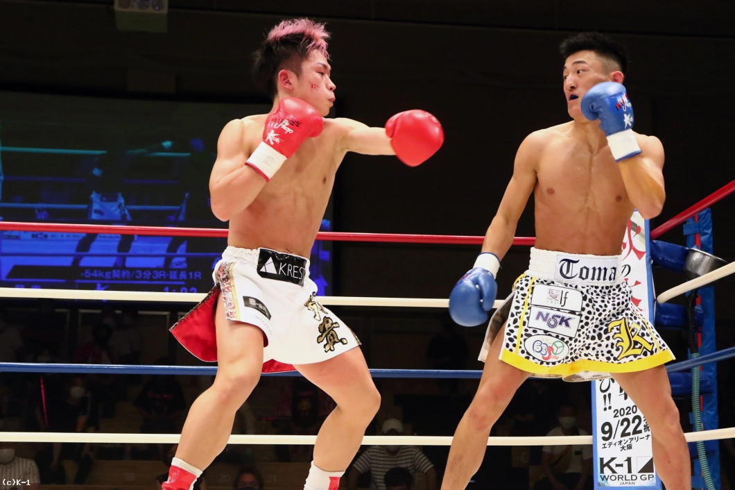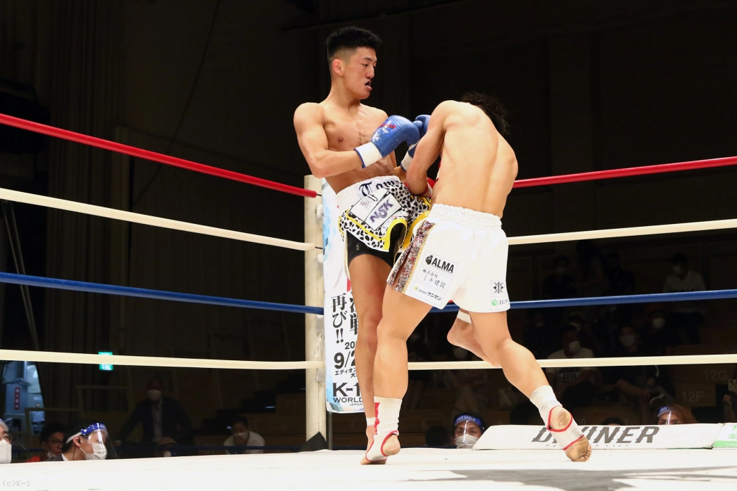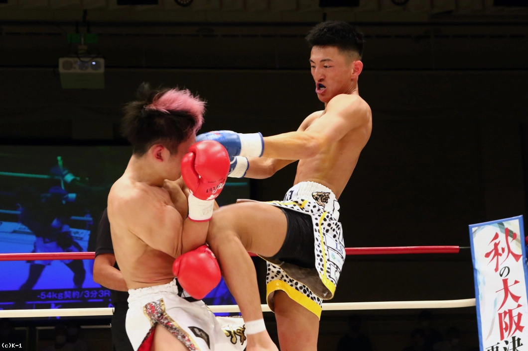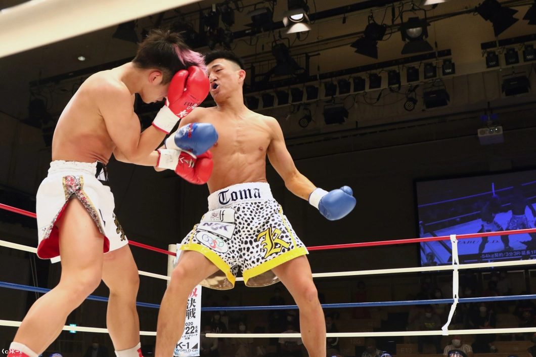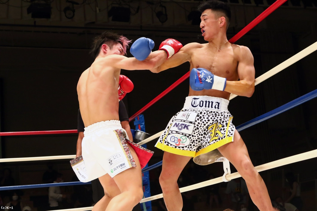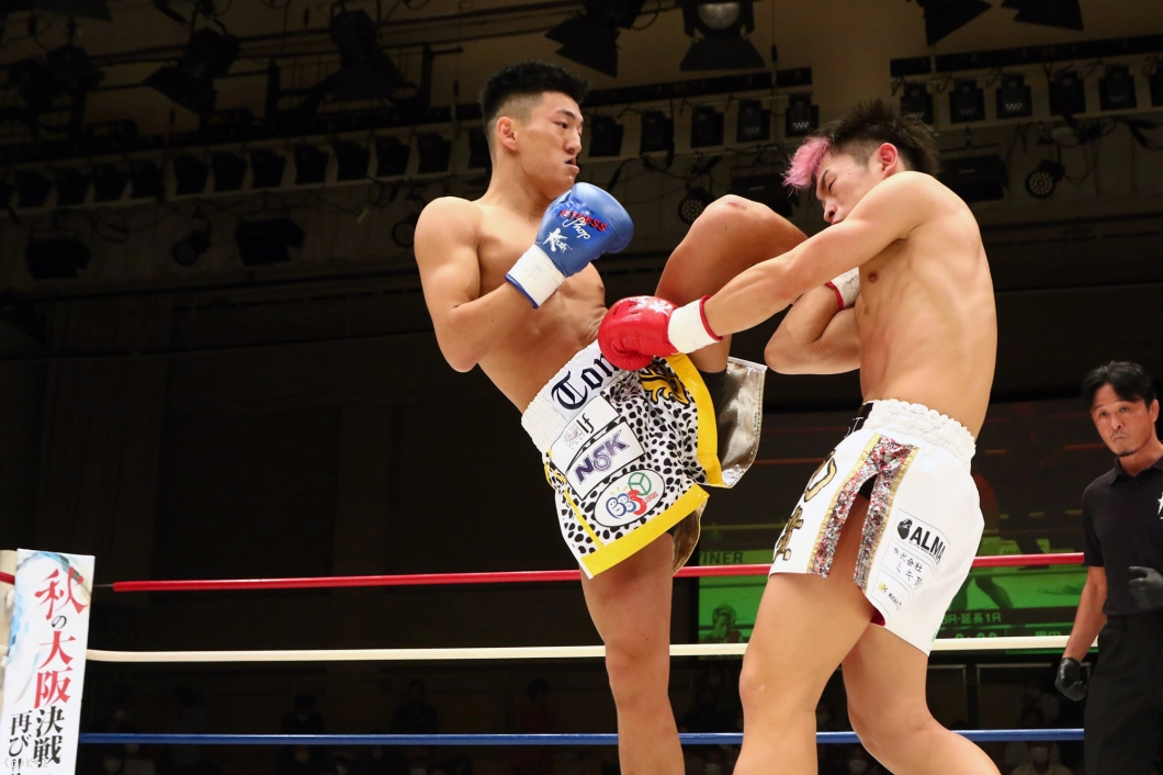 延長R、前に出る晃貴に対し、距離を作って展開せんとする黒田。晃貴の前進に合わせ、黒田はバランスを崩すインロー、右フックと放つ。晃貴はジャブ・右ストレートを伸ばすが思ったように黒田をとらえられない。しかし圧力をきかせて黒田のクリンチを呼び込み、これにレフェリーからイエローカードが出される。判定は10−8、10−8、10−8の3−0で晃貴。3連敗を脱する勝利を得た。