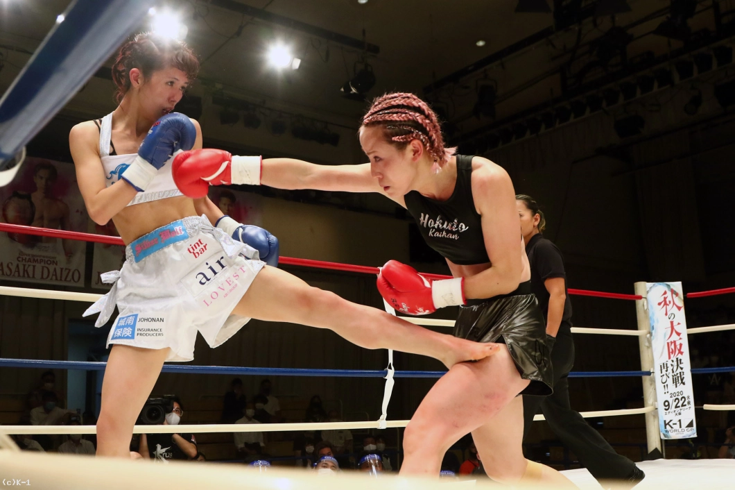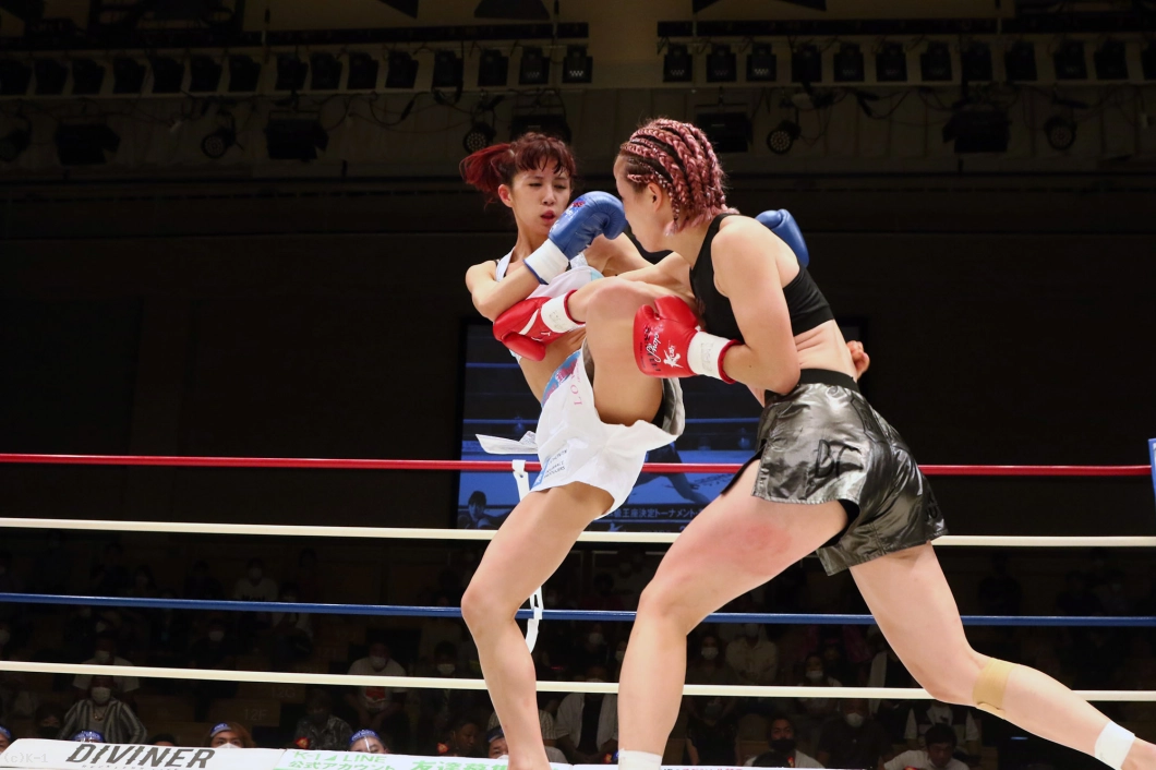 2R、菅原は左ミドル、右ローと入れ、前蹴りも放って優をストップする。菅原は的確な距離を取り、スピードある蹴りを飛ばして優にペースを握らせない。しかしラウンド終盤、優は菅原の低い前蹴りに合わせた右ストレートをクリーンヒット。だがその後の追撃は菅原がしのいで終える。