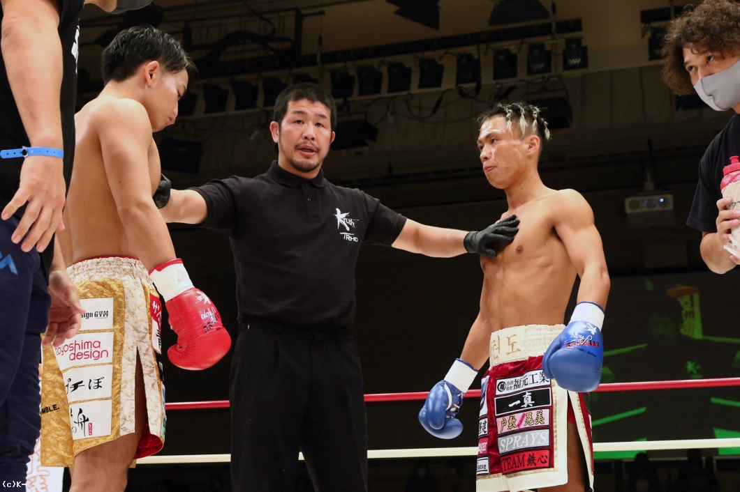 再開後、吏羅は左右フックを振るって向かうが、小倉はその内側を右ストレートで打ち抜いてダウンを追加。立ち上がった吏羅は後ろ回し蹴りを放って小倉の顔をとらえるが、小倉が左フックで3度目のダウンを奪って勝利した。