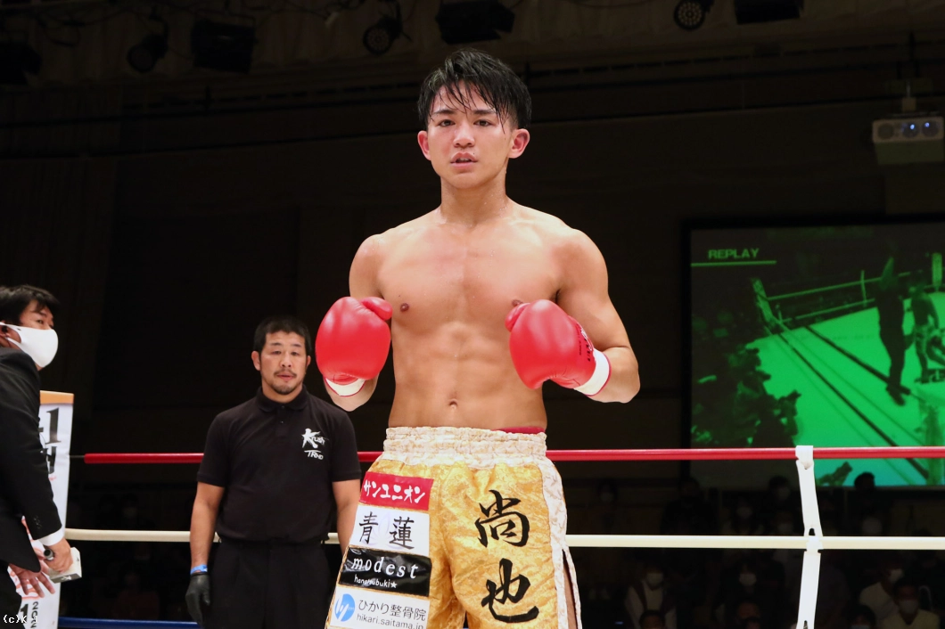 2R、前に来る小倉を吏羅は左ストレートを強振して止めんとするが、小倉はこのパンチに下がらない。逆に小倉は左フックを打ち込んで前に出る。吏羅は頻繁に構えをスイッチし、左右ストレートでとらえるが、吏羅がロープを背にしたところで小倉が右ストレートを当てダウンを奪う。