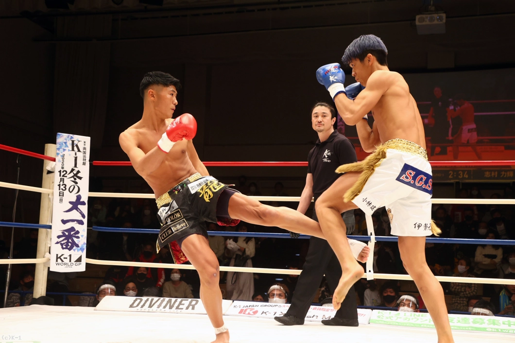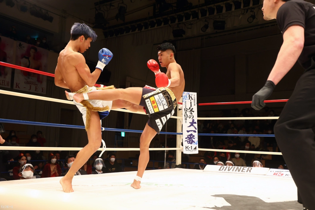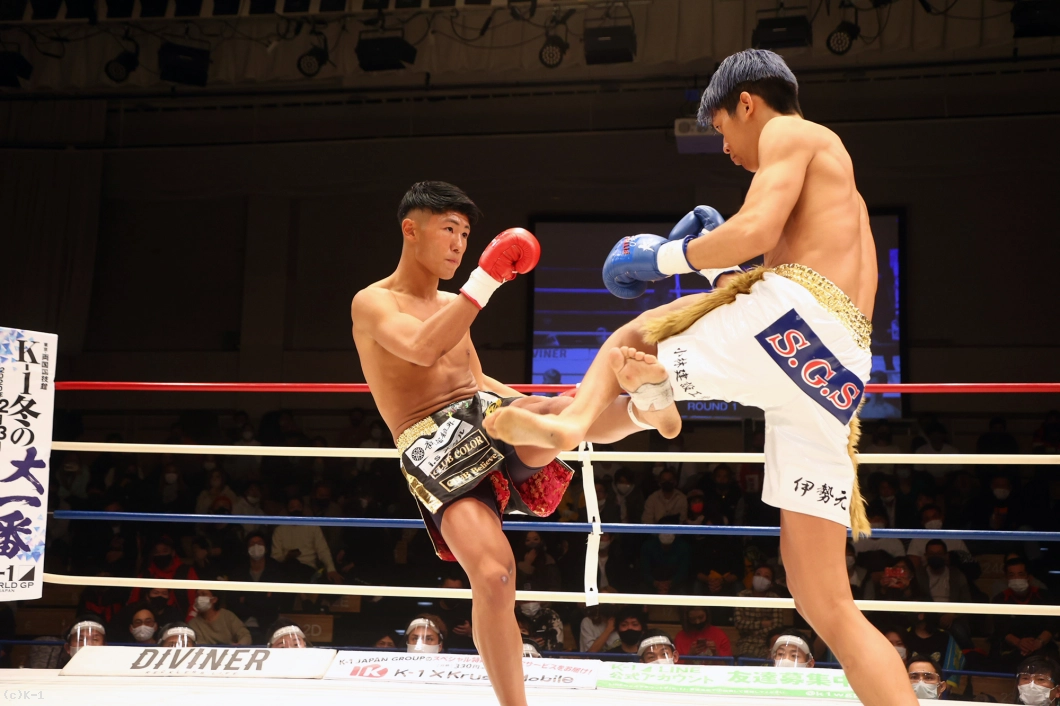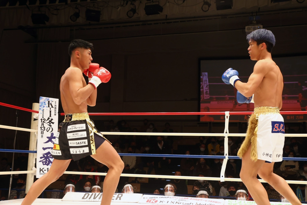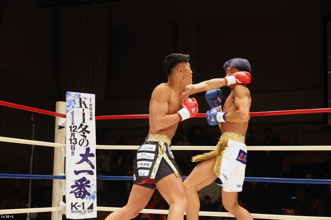 「昨日の計量を再計量でクリアして、対戦相手の志村選手とジムの代表・大沢選手、すみませんでした。久々のKOで勝ててホッとしています。自分これで6連勝、K-1甲子園も連覇したので、来年1月のK'FESTA、ぜひ声お待ちしてます」